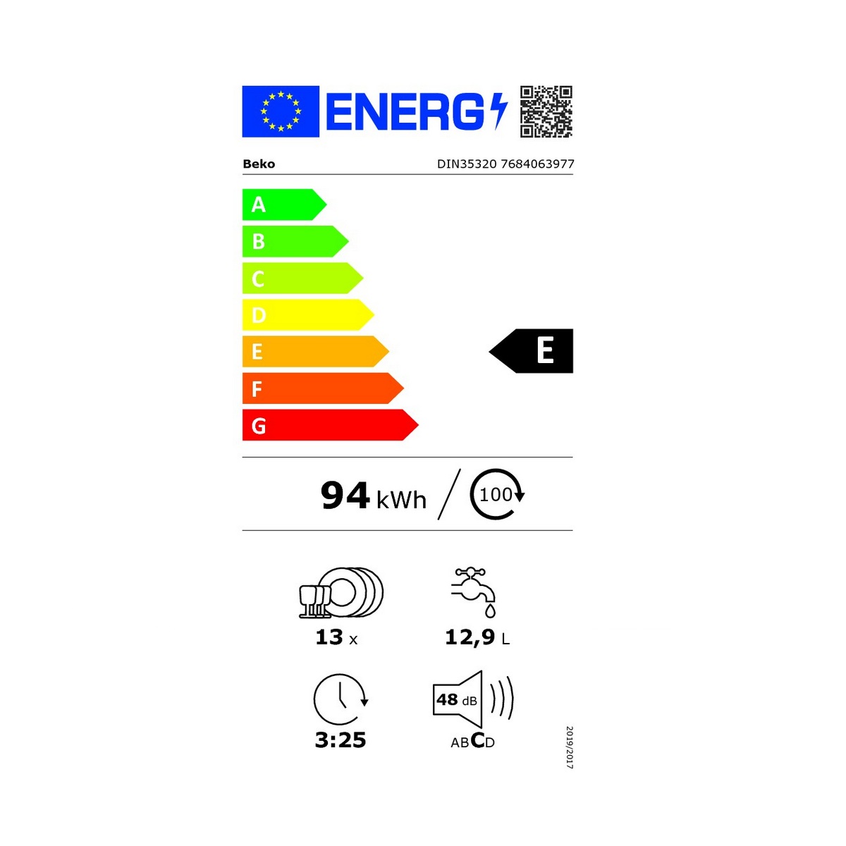 | Libellé | Lave-vaisselle 60cm 13 couverts 48db - DIN35320 - beko |
