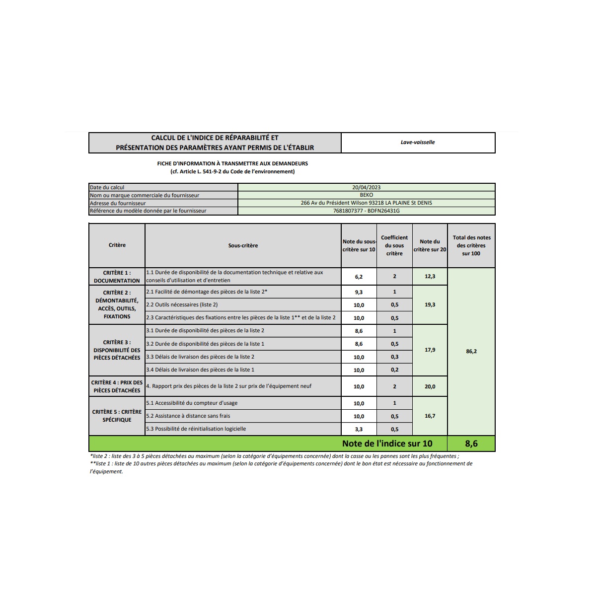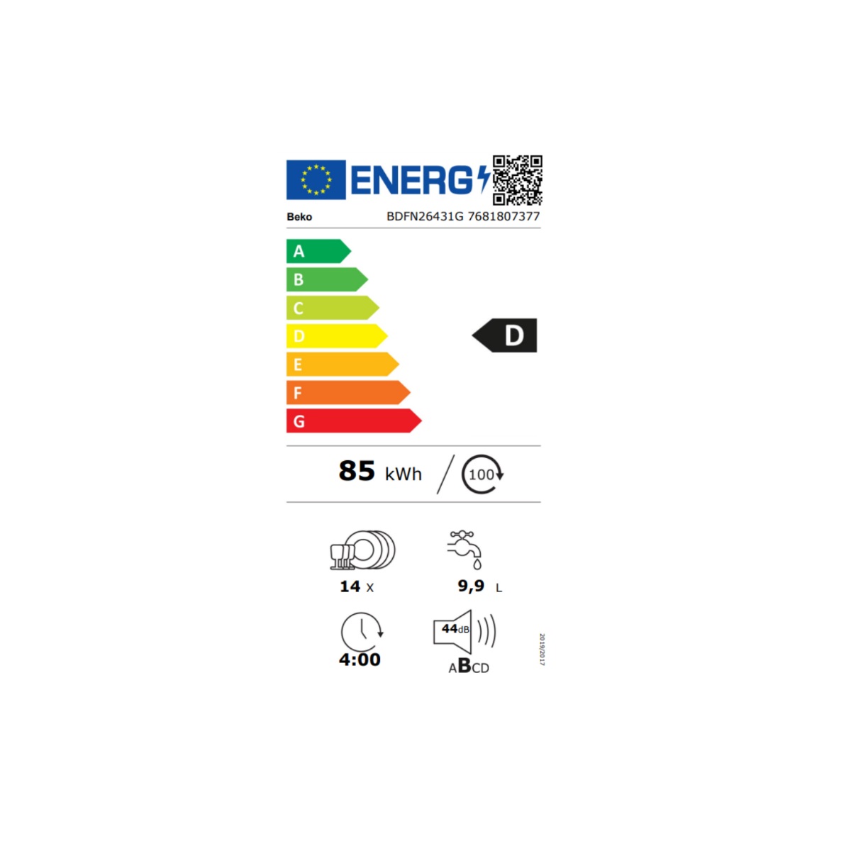 | Libellé | Lave-vaisselle 60cm 14 couverts 44db gris - BDFN26431G - beko |