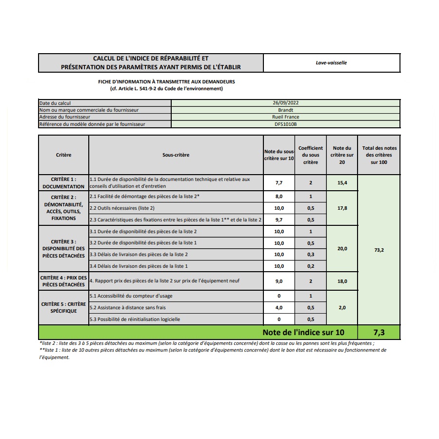 Indice de réparabilité 7,3 / 10