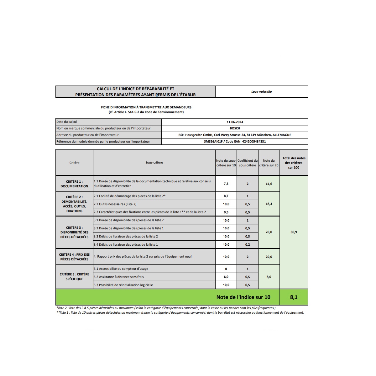 | Libellé | Lave-vaisselle pose libre - SMS26AI01F, Série 2, 60 cm, Acier brossé anti-traces |
