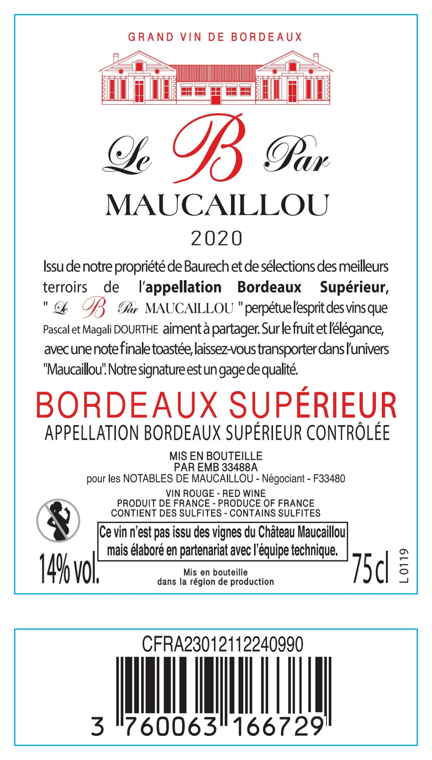 | Libellé | Le B par Maucaillou, 2020 - Bordeaux Supérieur AOP - Rouge - 75 cl |