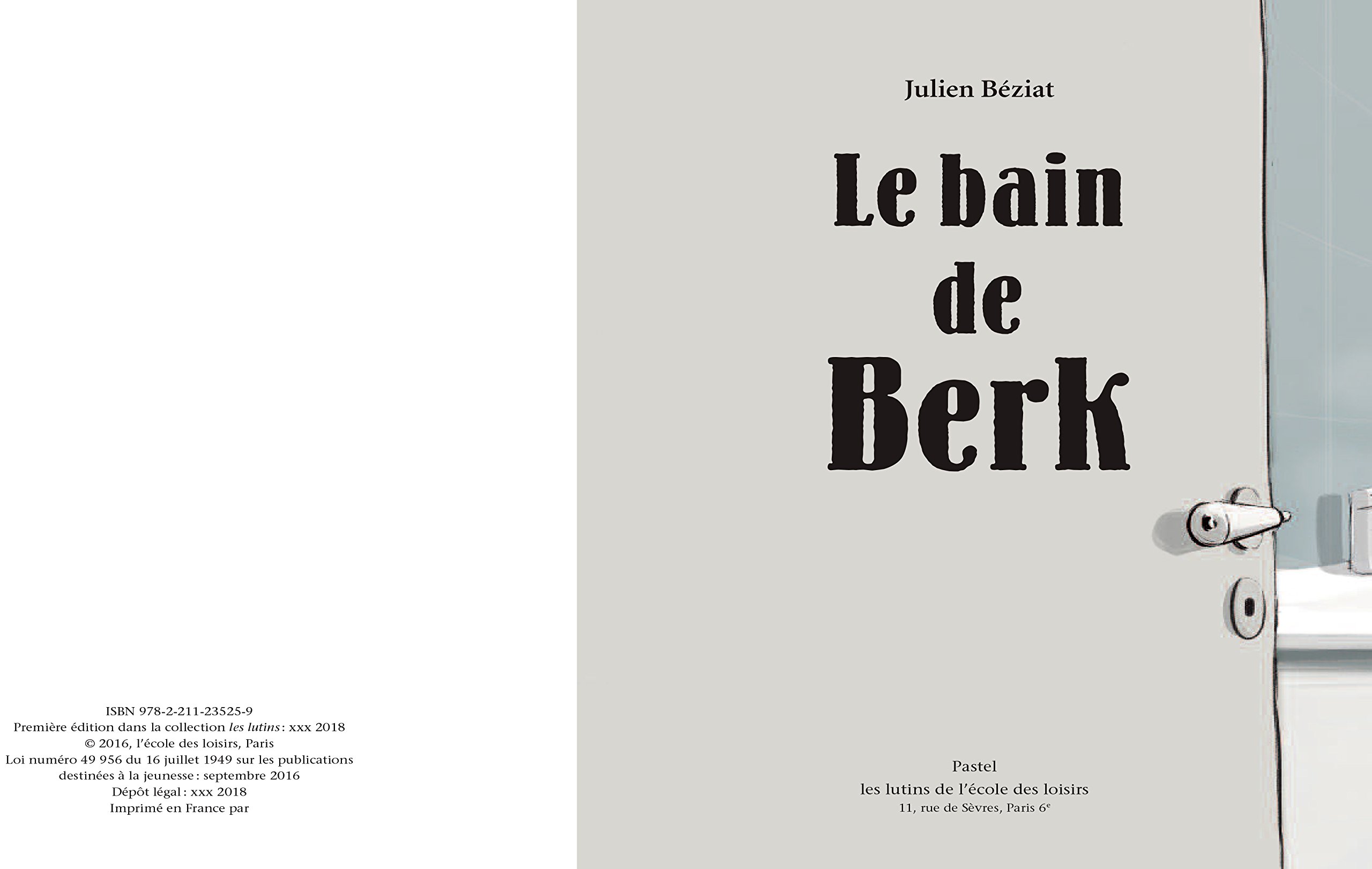 L'autre jour un truc terrible est arrivé dans mon bain. J'ai posé Berk sur le bord de la baignoire et je suis allé jouer dans ma chambre, le temps que l'eau finisse de couler. Le problème, c'est qu'il a glissé, et PLOUF ! Trouillette ma tortue a paniqué : Berk se noie ! . Drago, Poulp et Aspiro étaient prêts à tout pour l'aider mais qu'est-ce que le doudou-chouchou essayait de leur dire, la bouche remplie d'eau ? Les enfants de l'école maternelle Saint André Boisseau, dans le cadre du Prix du Livre Jeunesse de Marseille, ont réalisé une vitrine inspirée du Bain de Berk. Bravo à eux !