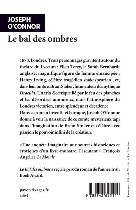 Avec ce roman malicieux sur la vie de Bram Stoker, créateur du mythique Dracula, le romancier irlandais Joseph O'Connor revient à la veine historique qui a fait son succès et fait revivre la Londres victorienne, sa vie théâtrale et ses personnages excentriques, dont la fantasque Ellen Terry, sorte de Sarah Bernhardt anglaise et figure féministe hors du commun. Roman d'amour, roman sur les mystères et les errances de la création, ce texte est une célébration de l'Art de raconter et de vivre des histoires.