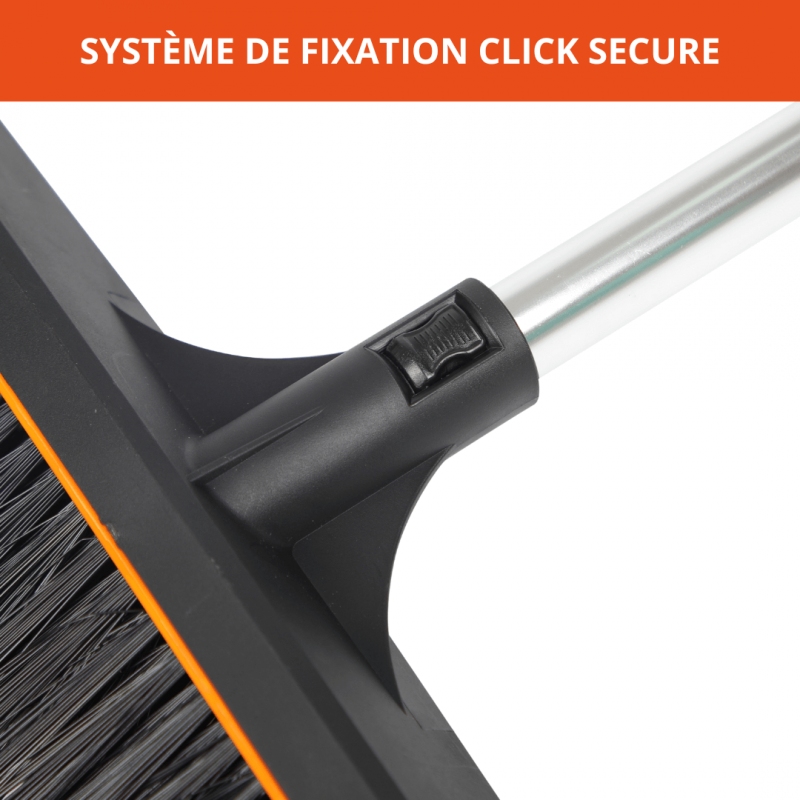 - Système de fixation CLICK SECURE : LE BALAI DU PRO est doté d'un système de fixation CLICK SECURE qui garantit une connexion solide entre la tête de balai et le manche télescopique. Ainsi, vous pouvez balayer en toute confiance, sans risque de détachement pendant le nettoyage.