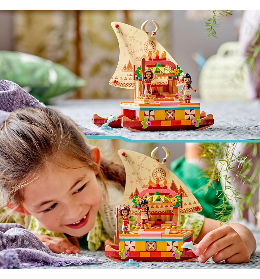 Ce jouet de construction détaillé Disney Princesse est rempli de fonctionnalités et d'accessoires pour décupler le plaisir du jeu de rôle lorsque les enfants revivent les scènes du film Disney : Vaiana ou Sina créent leurs propres scènes. Le bateau jouet à construire incorpore l'action et le jeu de maison tout en inspirant les compétences créatives des enfants. On peut jouer avec indépendamment ou l'ajouter à d'autres ensembles LEGO Disney (vendus séparément). Surprenez un fan des Princesses Disney et des jouets de construction LEGO avec ce jeu comme cadeau d'anniversaire spécial pour les enfants âgés de 6 ans et plus.