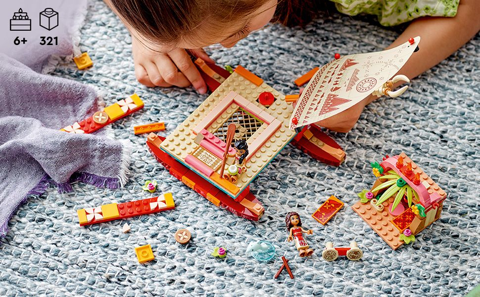 Ce set allie deux passions familiales : l'univers Disney et les lego . Celui ci a d'ailleurs été acheté au Lego store de Disneyland l'an passé. La construction est très sympa et l'univers de Vaiana est parfaitement représenté grâce a plein de petits détails . Je recommande