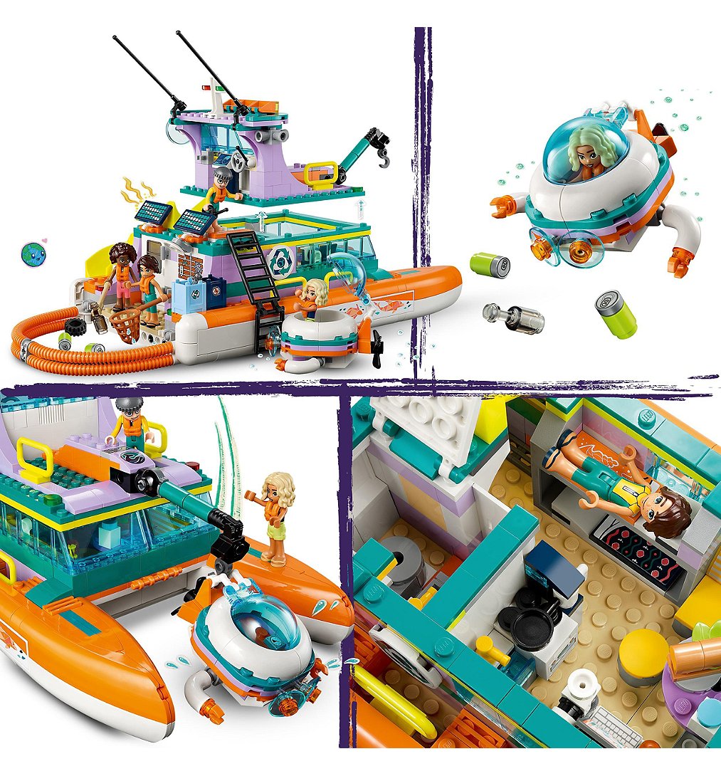 | Plus produit | Il est si amusant dimaginer des histoires créatives avec le set de construction Le bateau de sauvetage en mer LEGO® Friends ! Ce modèle inclut 4 mini-poupées et de nombreux accessoires. |