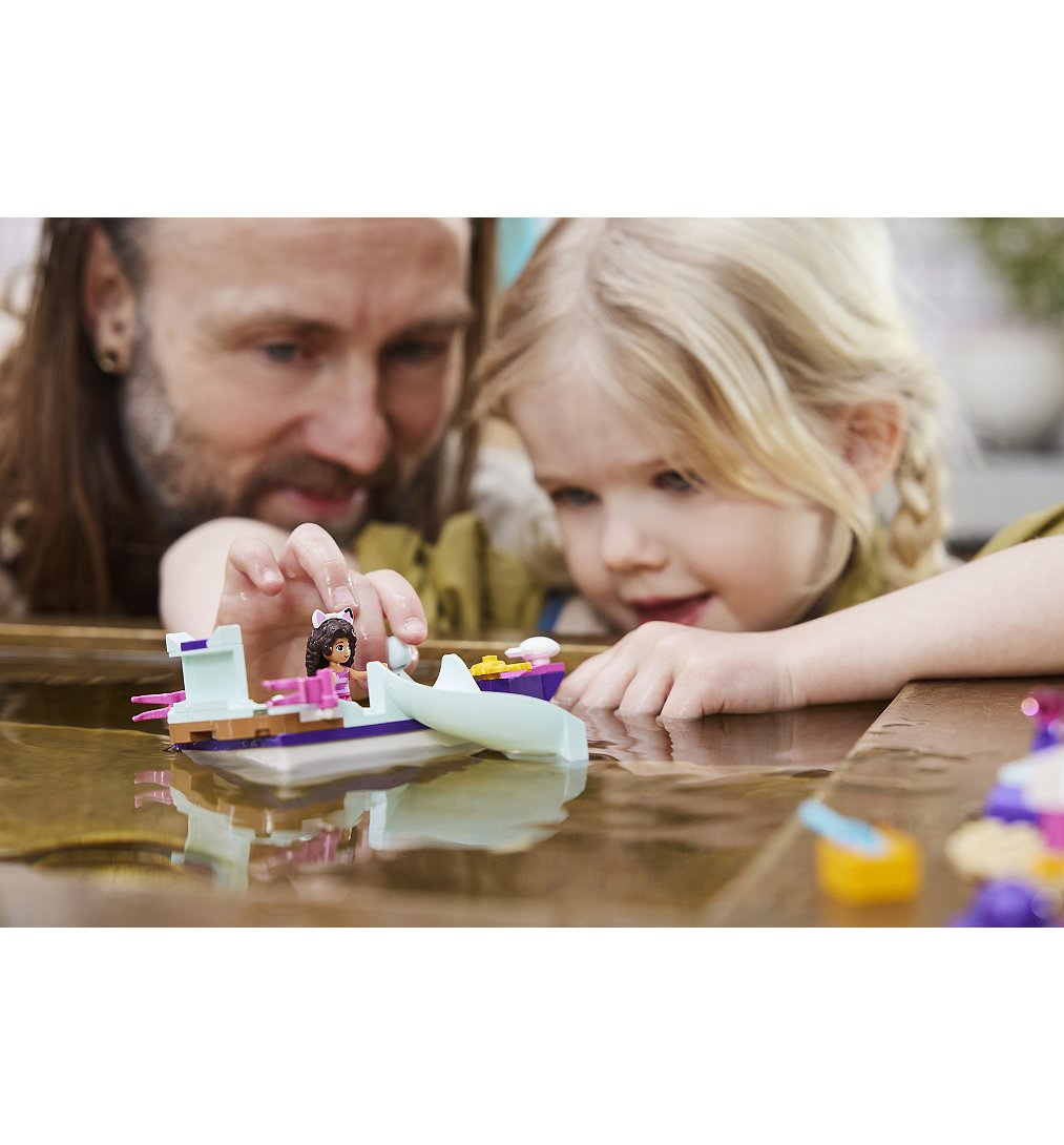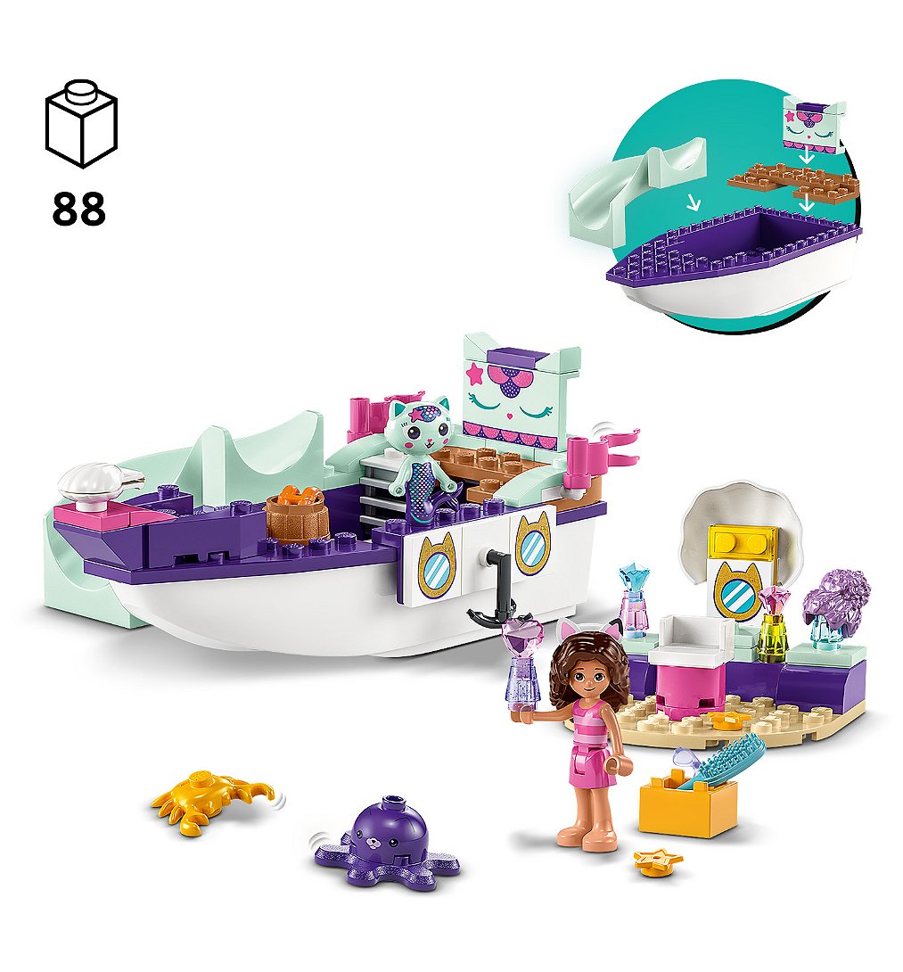 Les enfants qui aiment les jouets de bateaux, les mises en beauté et les jeux créatifs seront également inspirés pour explorer des aventures imaginatives infinies avec ce jeu aux multiples facettes. Le jouet Gabby et la Maison Magique comprend une minifigurine Gabby, une figurine Marine et la Maison Magique, un jouet de bateau à construire et un salon de beauté, ainsi que de nombreux accessoires Gabby et la Maison Magique, notamment des lunettes de soleil, des étoiles, un gilet de sauvetage, un miroir, une brosse, des produits capillaires et une perruque supplémentaire pour Gabby. Ce jouet LEGO Masion Gabby Chat a un guide de construction d'histoires illustrées en couleurs, tandis que l'application numérique LEGO Builder propose des outils intuitifs de zoom et de rotation. Et, avec un élément de jouet bateau Starter Brick, le plaisir de la construction peut commencer tout de suite.