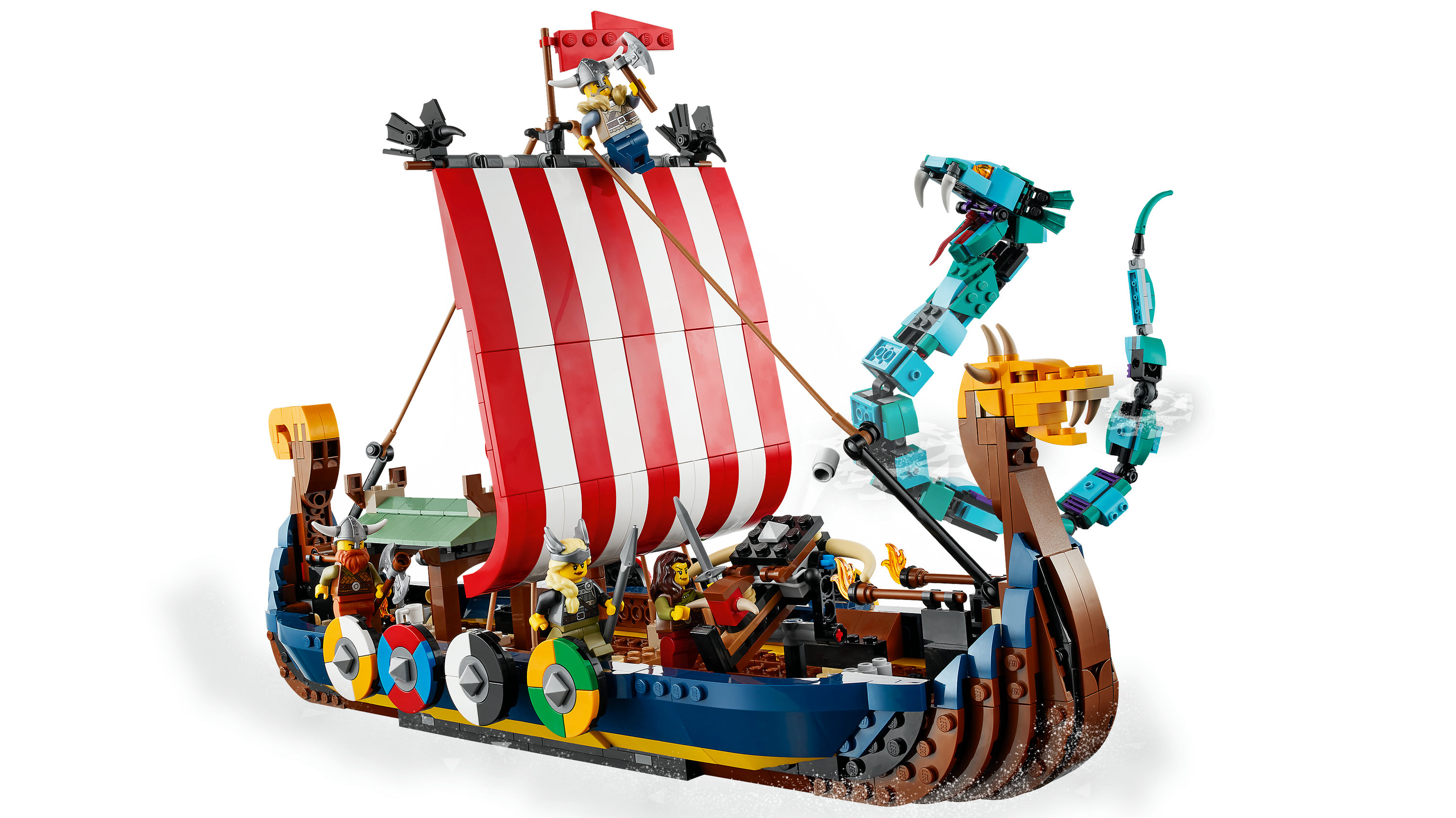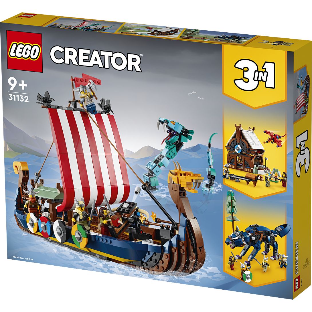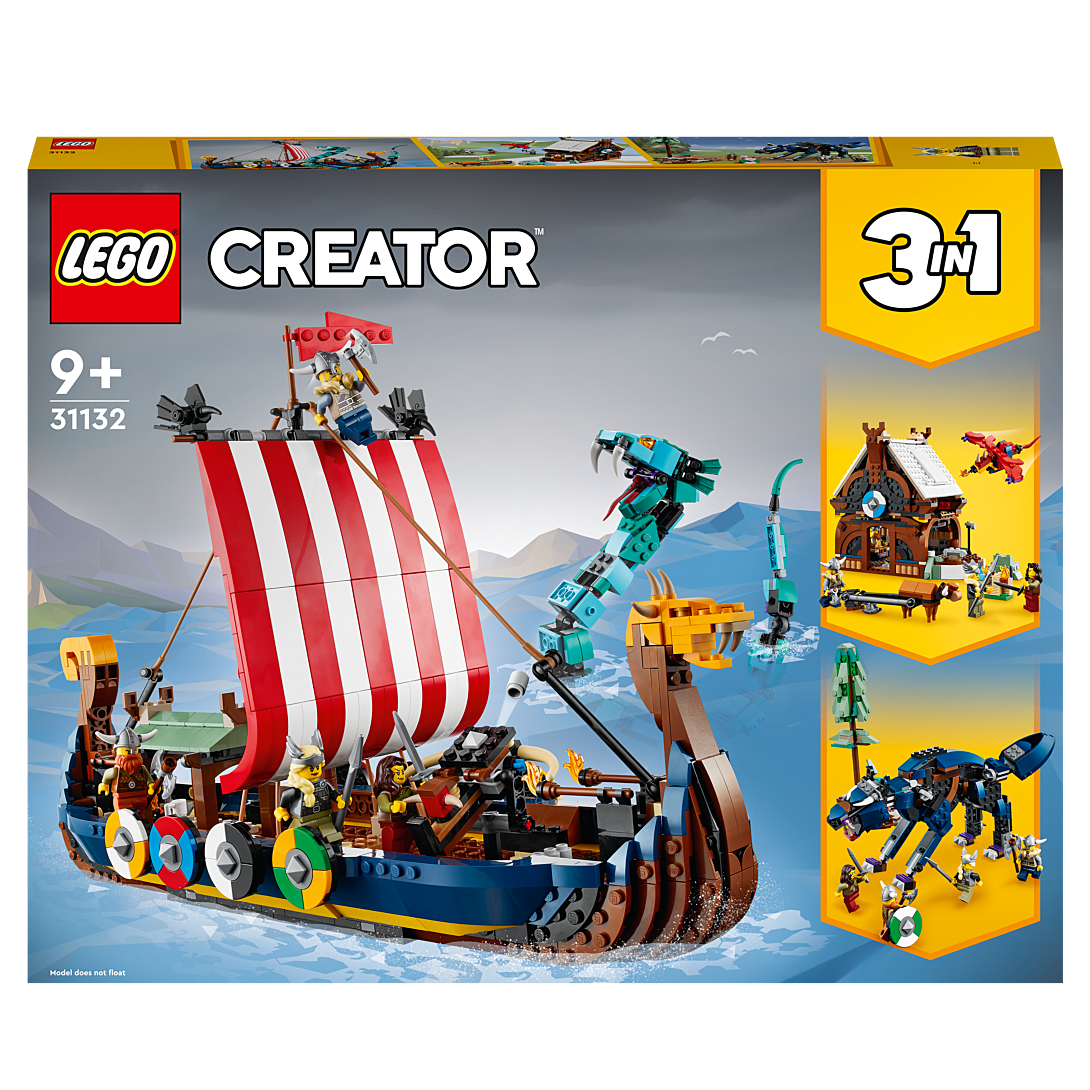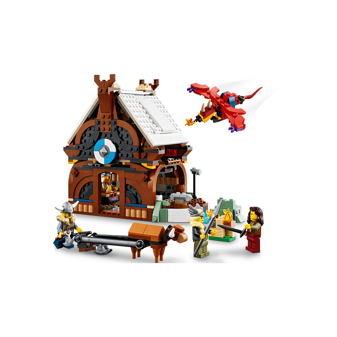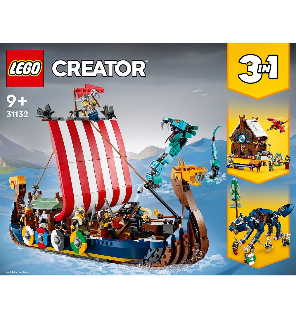 | Plus produit | Les enfants vont vivre des aventures de vikings passionnantes sur terre et en mer avec ce set LEGO® Creator 3-en-1 fantastique permettant de construire un bateau, une maison ou un loup. |