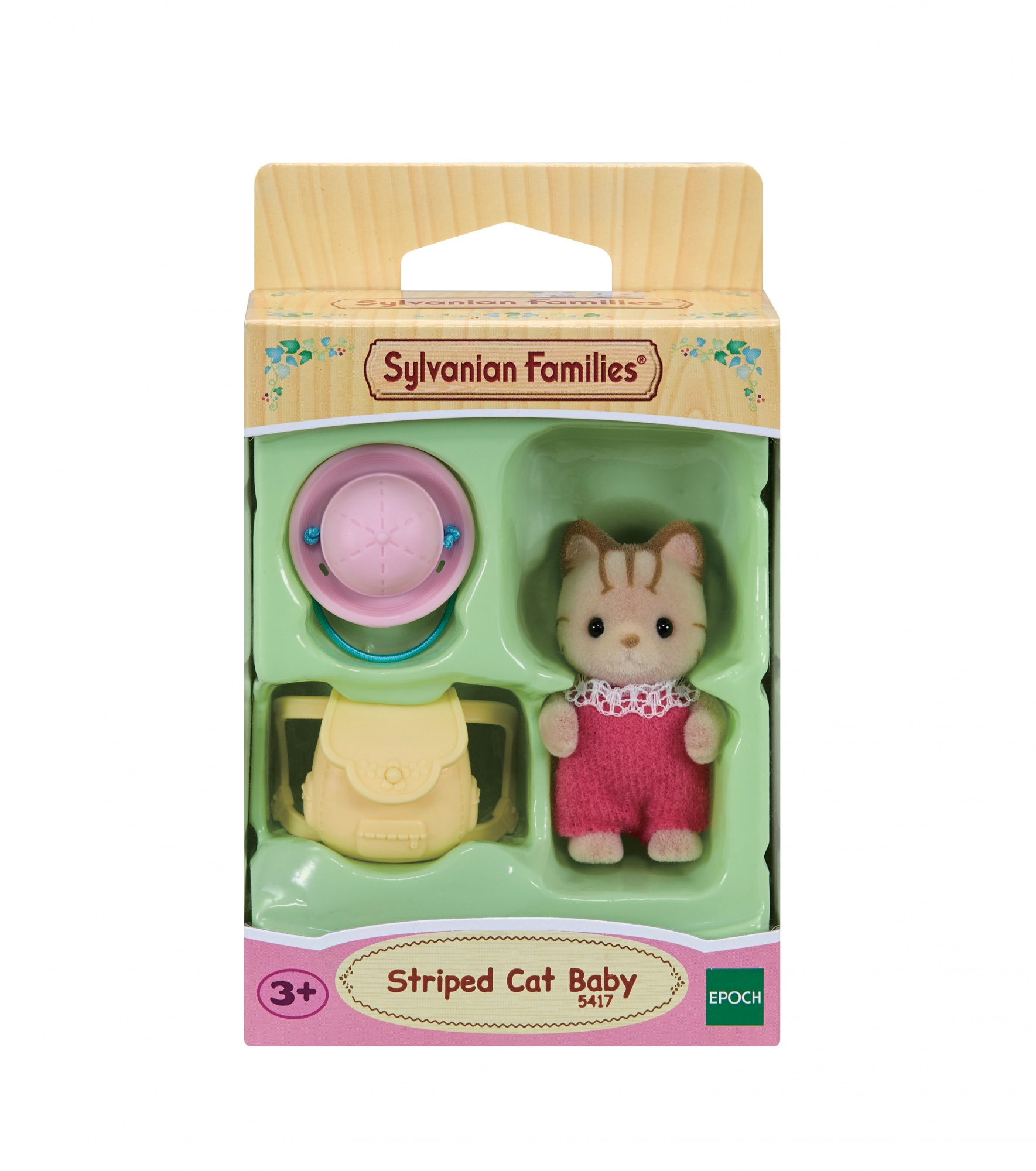 Le bébé chat tigré est fourni avec un chapeau et un sac.