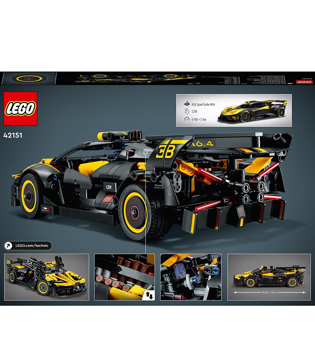 | Plus produit | Invitez les enfants à construire un véritable emblème en matière de technologie du sport automobile, avec le set LEGO® Technic Le bolide Bugatti. |