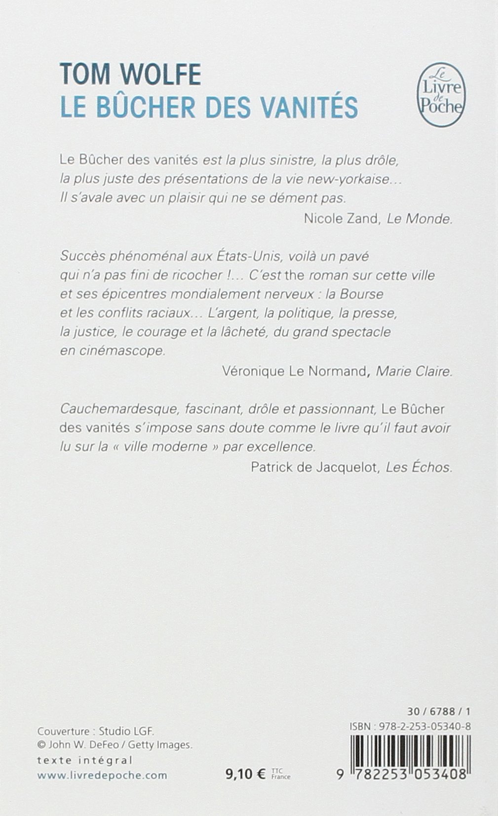Succès phénoménal aux États-Unis, voilà un pavé qui n'a pas fini de ricocher !... C'est the roman sur cette ville et ses épicentres mondialement nerveux : la Bourse et les conflits raciaux... L'argent, la politique, la presse, la justice, le courage et la lâcheté, du grand spectacle en cinémascope.