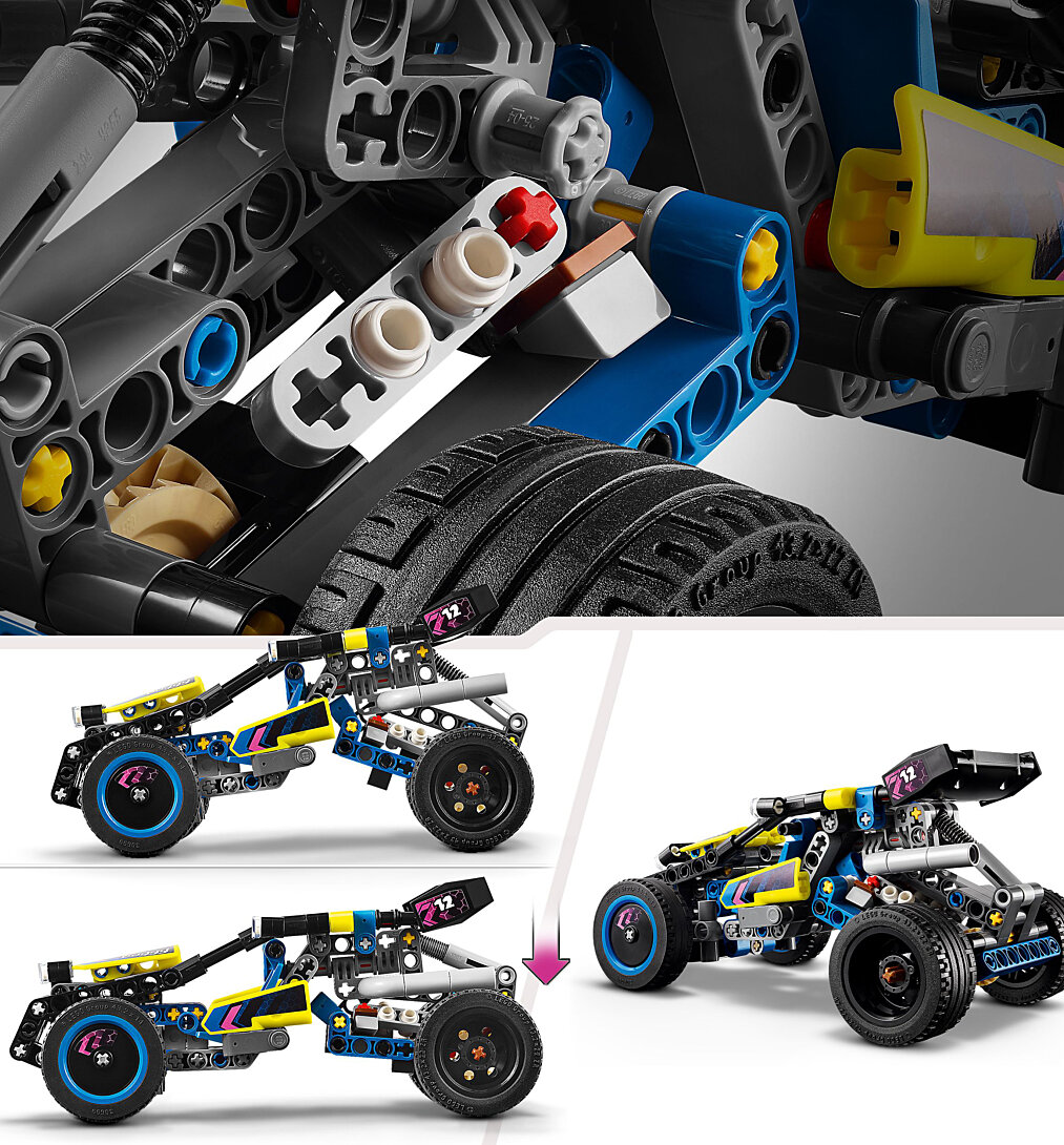 Les enfants de 8 ans ou plus s'amuseront beaucoup avec cette voiture de rallye fascinante. Ces jeunes constructeurs développent leurs compétences tout en assemblant Le Buggy Tout-Terrain de Course LEGO Technic (42164). L'expérience se poursuit en testant leur modèle. Il dispose de détails d'un réalisme fascinant inspirés des vrais buggies de course, tels que la suspension arrière, un moteur à 4 cylindres mobiles et une direction très flexible. Cet ensemble est idéal comme récompense ou idée de cadeau pour les enfants de 8 ans et plus amateurs de véhicules et de voitures de course jouet. Les ensembles de construction LEGO Technic combinent des détails réalistes avec des modèles interactifs afin de susciter la curiosité des jeunes constructeurs LEGO pour l'ingénierie. Offrez à votre enfant une aventure de construction amusante avec l'application LEGO Builder, qui lui permettra de voir en gros plan des versions en 3D de ses modèles, de les faire tourner et de suivre ses progrès.