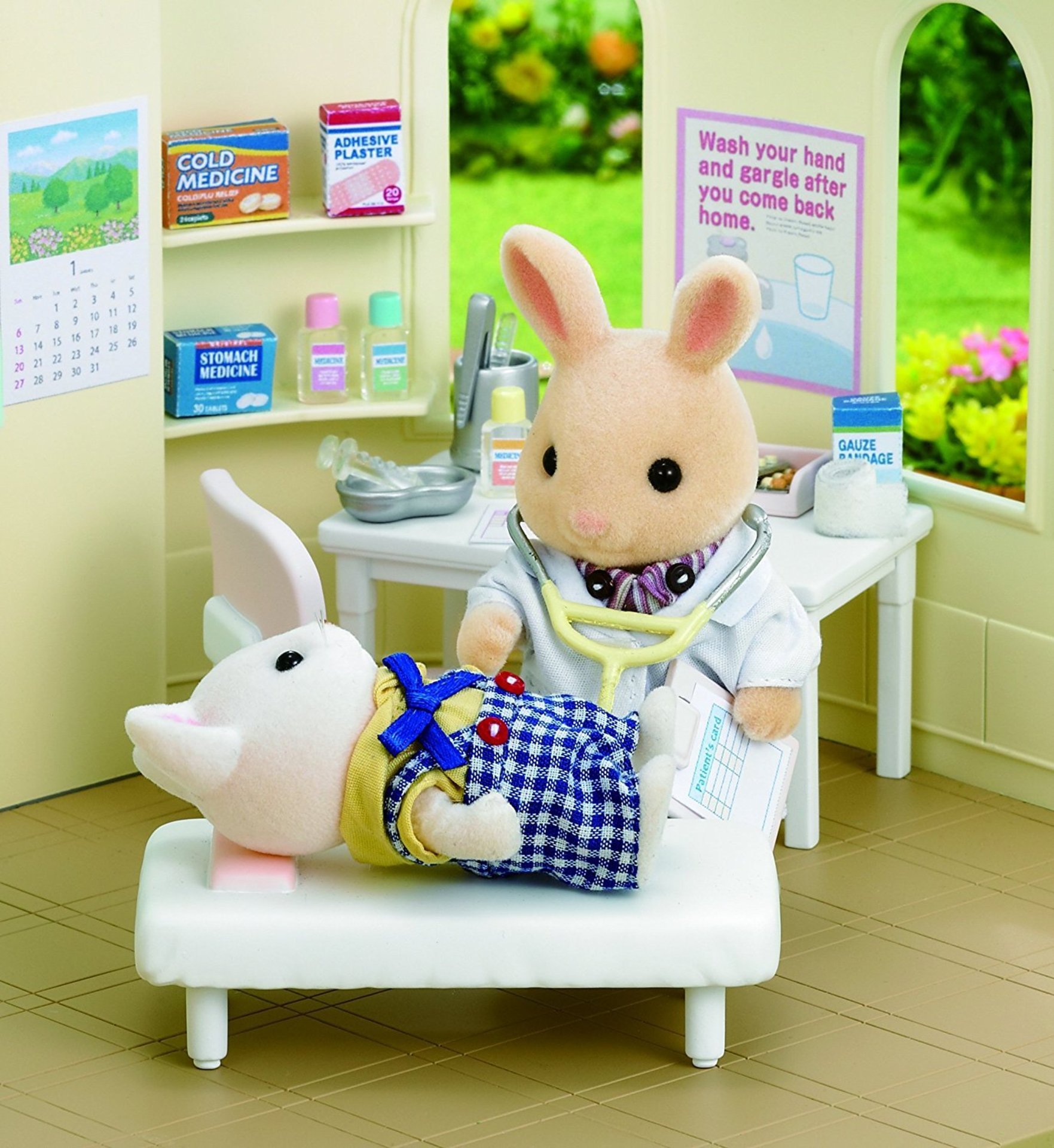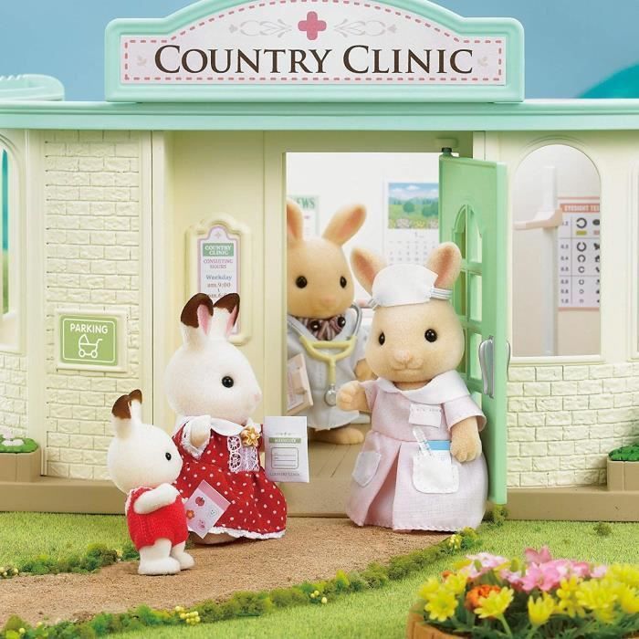 Le cabinet médical qui est fourni avec tout le nécessaire pour l'équiper : comptoir de réception, banquette pour salle d'attente, lit de consultation, bureau, chaise pivotante, pèse personne, toise, blouse de médecin, stéthoscope, et encore plus de 30 accessoires pour soigner. Il peut être assemblé à toutes les maisons du village : maison tradition éclairée (réf2752), Set cottage cozy (réf2778), Maison aux 3 histoires (réf2745) mais également à la crèche et à l'école de la forêt.