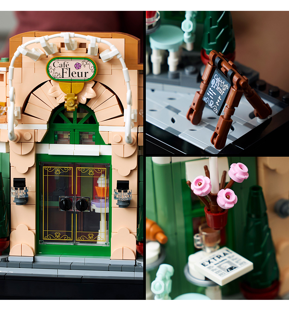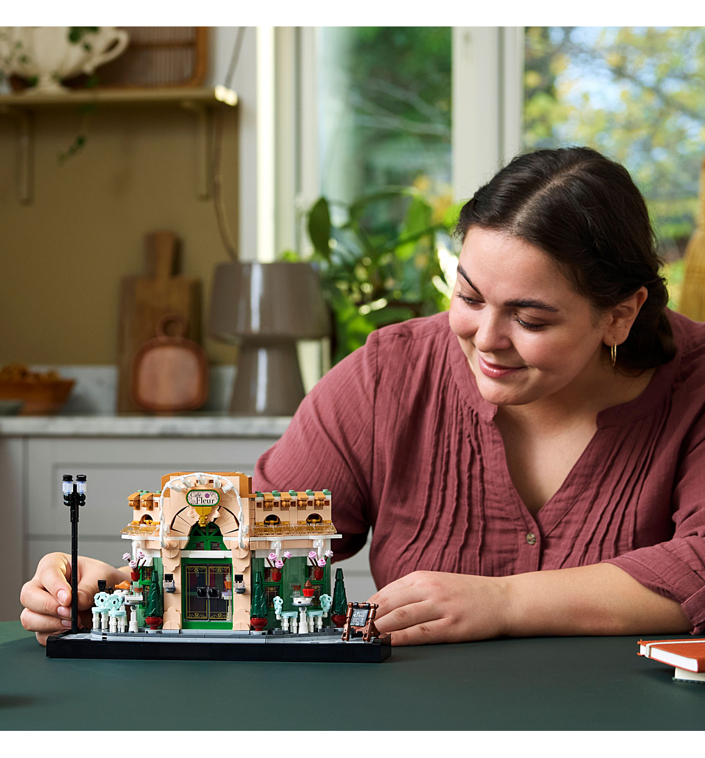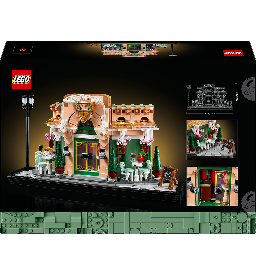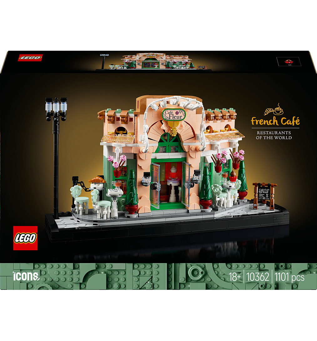 Rendez hommage à l’art de vivre français avec le set de construction pour adultes LEGO Icons Le café français (10362). Détendez-vous en créant un objet de décoration intérieure unique pour la maison ou le bureau, évoquant le charme de Paris. Ce kit décoratif collector est conçu pour les adultes fans de construction LEGO, de voyages et amoureux de la ville de l'Amour. Avec un trottoir en briques LEGO orné d’un lampadaire traditionnel, le décor du Café Fleur est planté. Le bistro possède une façade pittoresque, des chaises décoratives, des pots de fleurs suspendus et des portes doubles qui révèlent un intérieur revêtu d'un somptueux papier peint et embelli par un mobilier en bois sombre. Regorgeant de détails et d'accessoires travaillés, comme des croissants, des tasses, un journal ou encore une caisse enregistreuse, ce set de construction recrée l’apparence d’un bistro à la française. Voilà une superbe maquette à exposer ou à offrir en cadeau. Explorez la gamme de sets LEGO pour adultes. L’appli LEGO Builder propose une version 3D des instructions fournies dans ce set collector, conçu pour votre intérieur ou votre bureau.