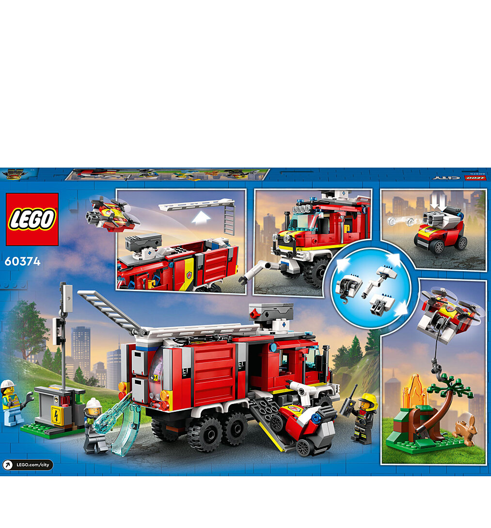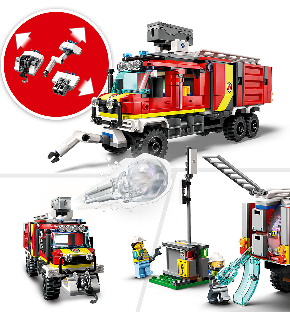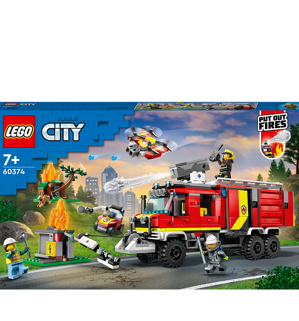 | Plus produit | Un set LEGO® City sur le thème des pompiers riche en fonctionnalités, qui inclut un camion de pompiers doté dincroyables fonctions, 3 minifigurines et de nombreux accessoires amusants. |
