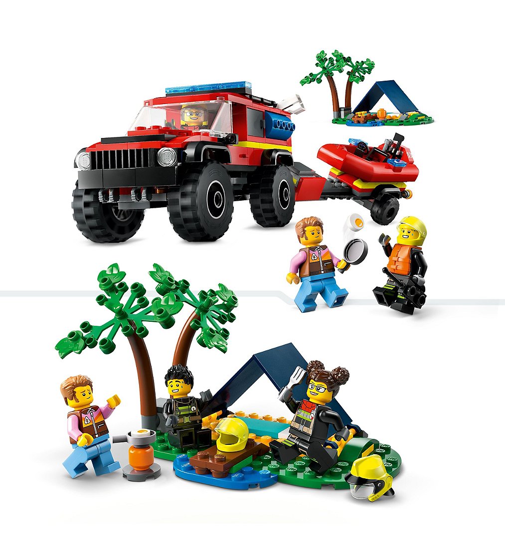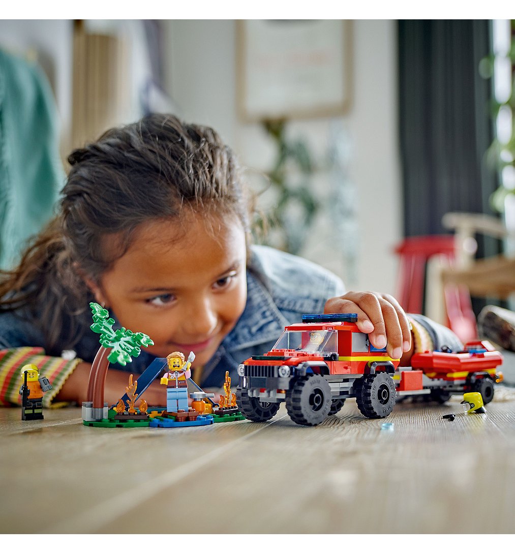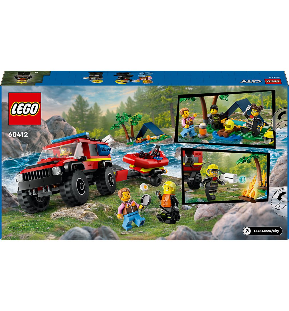 Une combinaison gagnante pour les fans de véhicules de pompiers. Le grand ensemble LEGO City 4x4 Le Camion de Pompiers 4x4 et le Canot de Sauvetage (60412) pour garçons et filles âgés de 5 ans et plus est optimal pour de grandes aventures. Il comprend une remorque pour transporter le bateau de sauvetage jouet, ainsi qu'une tente jouet et une scène de camping. Ajoutez les figurines de pompier et de randonneur pour préparer le terrain à toutes sortes d'aventures. Embarquez votre héros de tous les jours dans une expérience amusante avec l'application LEGO Builder. Il peut explorer et sauvegarder des modèles de jouets, suivre ses progrès, zoomer et faire pivoter les modèles pour les voir sous tous les angles pendant qu'il construit. Les ensembles LEGO City Fire comprennent des véhicules terrestres, aériens et maritimes détaillés. Votre enfant peut ajouter l'ensemble de jouets Camion de pompiers 4x4 avec bateau de sauvetage à d'autres ensembles de la gamme LEGO City (vendus séparément) pour développer ses aventures.