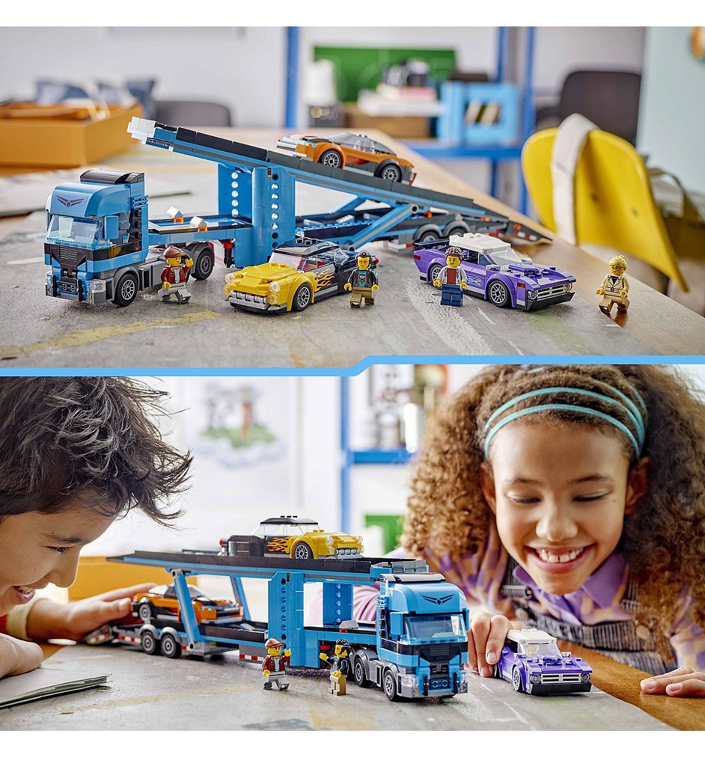 | Plus produit | Les fans de voitures vont adorer ce set LEGO® City qui inclut un camion de transport à deux plateaux avec remorque, 3 véhicules et 4 minifigurines. |