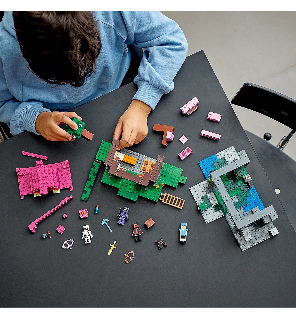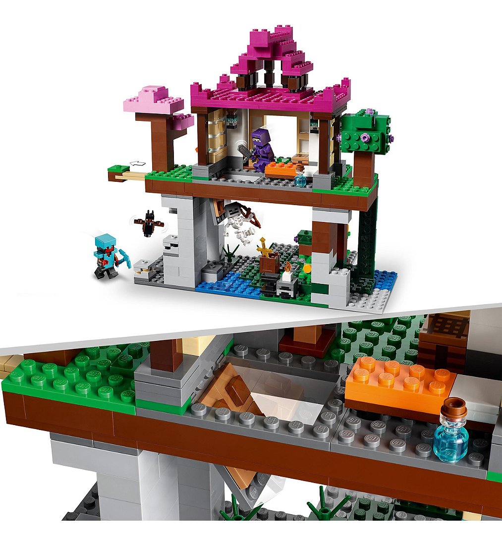 Le jouet de construction LEGO Minecraft pour enfants dès 8 ans Le camp d’entraînement (21183) est un grand set détaillé et très polyvalent qui offrira des heures d’amusement aux joueurs de Minecraft et à tous les enfants qui aiment le jeu créatif et d’imagination. Cette maison Minecraft LEGO consiste en un dojo à l’étage supérieur où vit et s’entraîne le guerrier Minecraft. À l’étage inférieur, on trouve une grotte de forgeron avec une enclume, un four, un support à armure et plus encore pour que les enfants puissent créer et réparer leurs armes. Une trappe connecte les 2 étages et elle peut être activée en poussant le bloc situé en dessous de l’arbre. On trouve de tout dans ce set spectaculaire avec ses figurines Minecraft et ses scènes d’action, grâce au squelette maraudeur. Ensuite, si le joueur veut changer de monde, il peut séparer les niveaux et reconfigurer le set pour créer une toute nouvelle expérience de jeu. Offrez aux enfants un projet de construction gratifiant avec une expérience de jeu captivante et un modèle spectaculaire à exposer grâce à ce set LEGO Minecraft interactif impressionnant. Avec ses détails authentiques, ses fonctionnalités incroyables et ses accessoires amusants, ce jouet constitue un cadeau de Noël pour garcons et filles dès 8 ans idéal pour les fans du jeu ! Mesure plus de 24 cm de haut, 24 cm de large et 15 cm de profondeur Contient 534 pièces.