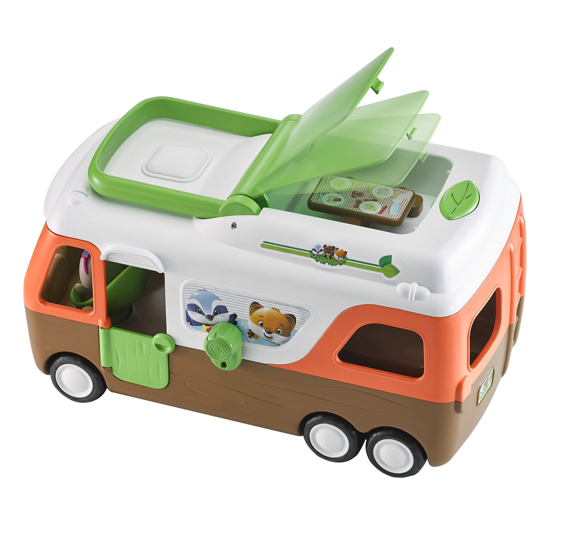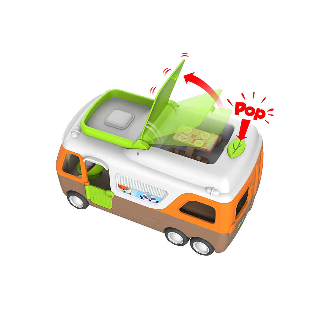 C’est parti pour l’aventure avec le Camping-car des Klorofil ! Telle une maison roulante, il y a tout dans le camping-car: le poste de pilotage, une cuisine, un espace repas et une chambre/salle de jeu ! Avec plus de 8 activités surprises et amusantes, le camping car est le jouet idéal pour des heures de jeu ! Inclus : Un personnage exclusif et une table de pique-nique.