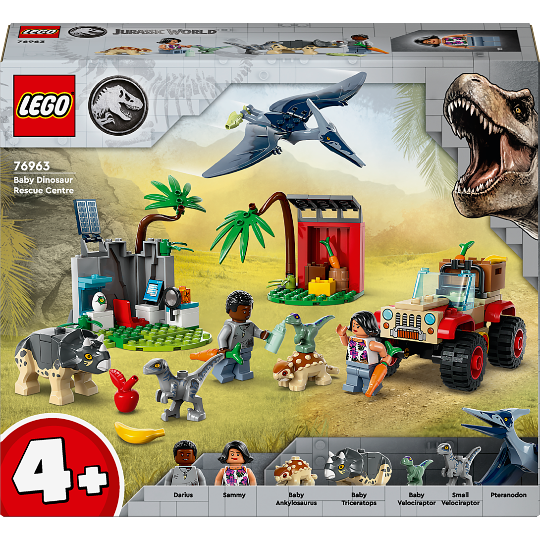 Les jeunes fans âgés de 4 ans et plus peuvent s'occuper et jouer avec les bébés dinosaures tout en apprenant à construire avec ce set LEGO Jurassic World Le Centre de Sauvetage des Bébés Dinosaures (76963). Il comprend un véhicule tout-terrain et une zone de recherche avec un mur de caverne, tous deux avec des éléments Starter Brick, ainsi qu'une station d'alimentation, 2 figurines, des figurines de bébé Ankylosaurus, de Triceratops et de Velociraptor, ainsi que des figurines de dinosaures enfant et adulte Velociraptor pour commencer le jeu rapidement. Des instructions illustrées sont incluses avec ce jouet LEGO de dinosaure pour les enfants qui apprennent tout juste à lire. Pour plus de plaisir numérique, l'application LEGO Builder propose des outils de zoom et de rotation intuitifs qui aident les garçons et les filles à voir leur modèle pendant la construction. Les ensembles LEGO Jurassic World 4+ présentent aux jeunes enfants leurs personnages de film et de télévision préférés, et offrent un ensemble LEGO de dinosaures amusant en cadeau. Ils sont livrés avec des Starter Bricks spécialement conçus, de sorte que même les constructeurs novices peuvent créer des véhicules, des bâtiments et bien plus avec un peu d'aide d'un frère ou d'une sœur plus âgé(e) ou d'un adulte.