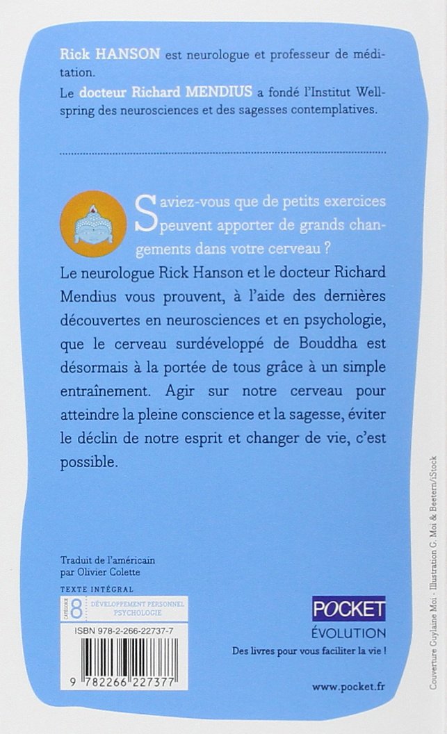 Le neurologue Rick Hanson et le docteur Richard Mendius vous prouvent, à l'aide des dernières découvertes en neurosciences et en psychologie, que le cerveau surdéveloppé de Bouddha est désormais à la portée de tous grâce à un simple entraînement. Agir sur notre cerveau pour atteindre la pleine conscience et la sagesse, éviter le déclin de notre esprit et changer de vie, c'est possible.