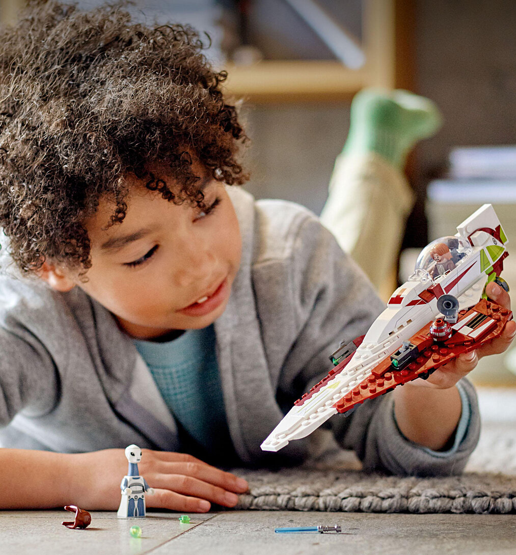 | Plus produit | Enchantez les fans de Star Wars : LAttaque des clones avec un modèle à construire du chasseur Jedi dObi-Wan Kenobi, ainsi que 2 minifigurines LEGO®, dont Taun We ! |