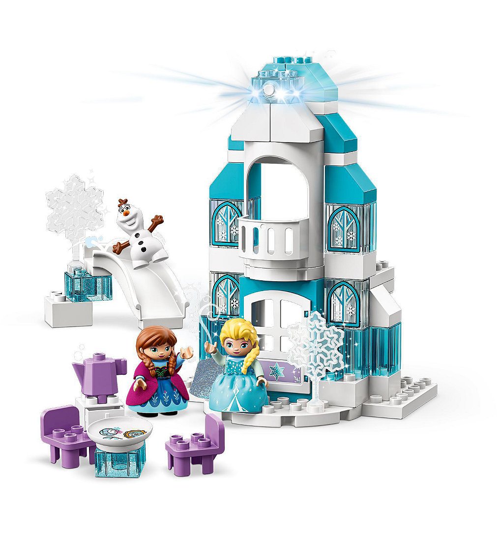| La boîte contient | Piles;• Inclut 3 figurines LEGO® DUPLO® : Anna, Elsa et Olaf. • Ce château de la Reine des neiges Disney comprend un toboggan, une table, des chaises et des équipements de cuisine. Une brique lumineuse spéciale activée par un bouton éclaire le château de lumières multicolores. • Les enfants apprennent à maîtriser les compétences de construction de base et améliorent leur motricité fine en assemblant et en repositionnant les briques de construction, pour des possibilités illimitées de jeu créatif. • Ce jouet à construire pour tout-petits est conçu pour favoriser le jeu de rôle et l'élaboration d'histoires. Il contribue au développement du langage et des compétences sociales et émotionnelles des enfants. • Le château de la Reine des neiges Disney mesure plus de 28 cm de haut, 19 cm de large et 16 cm de profondeur. |
