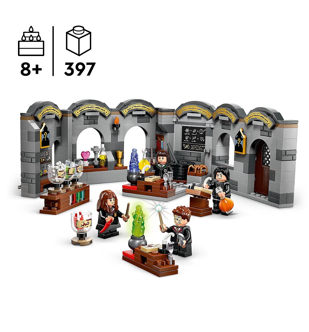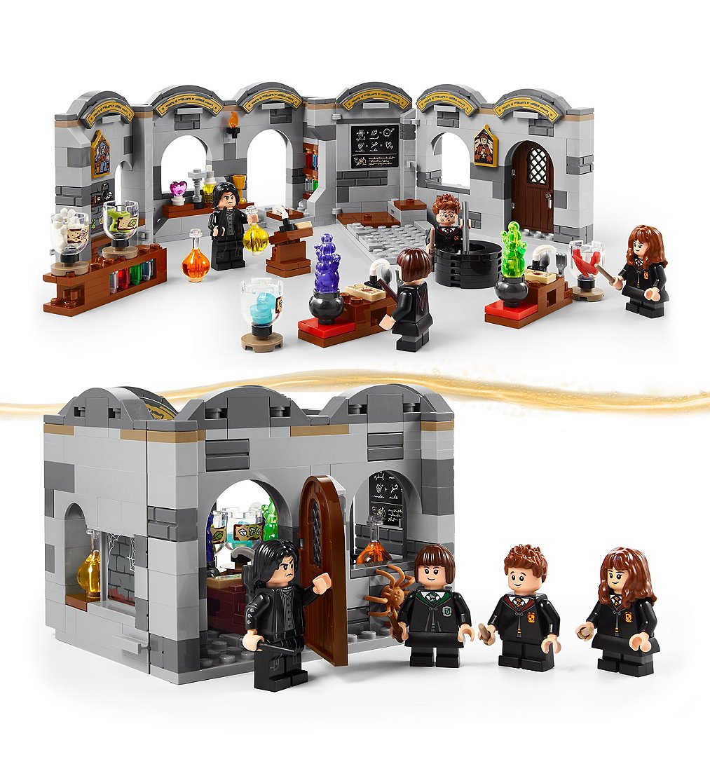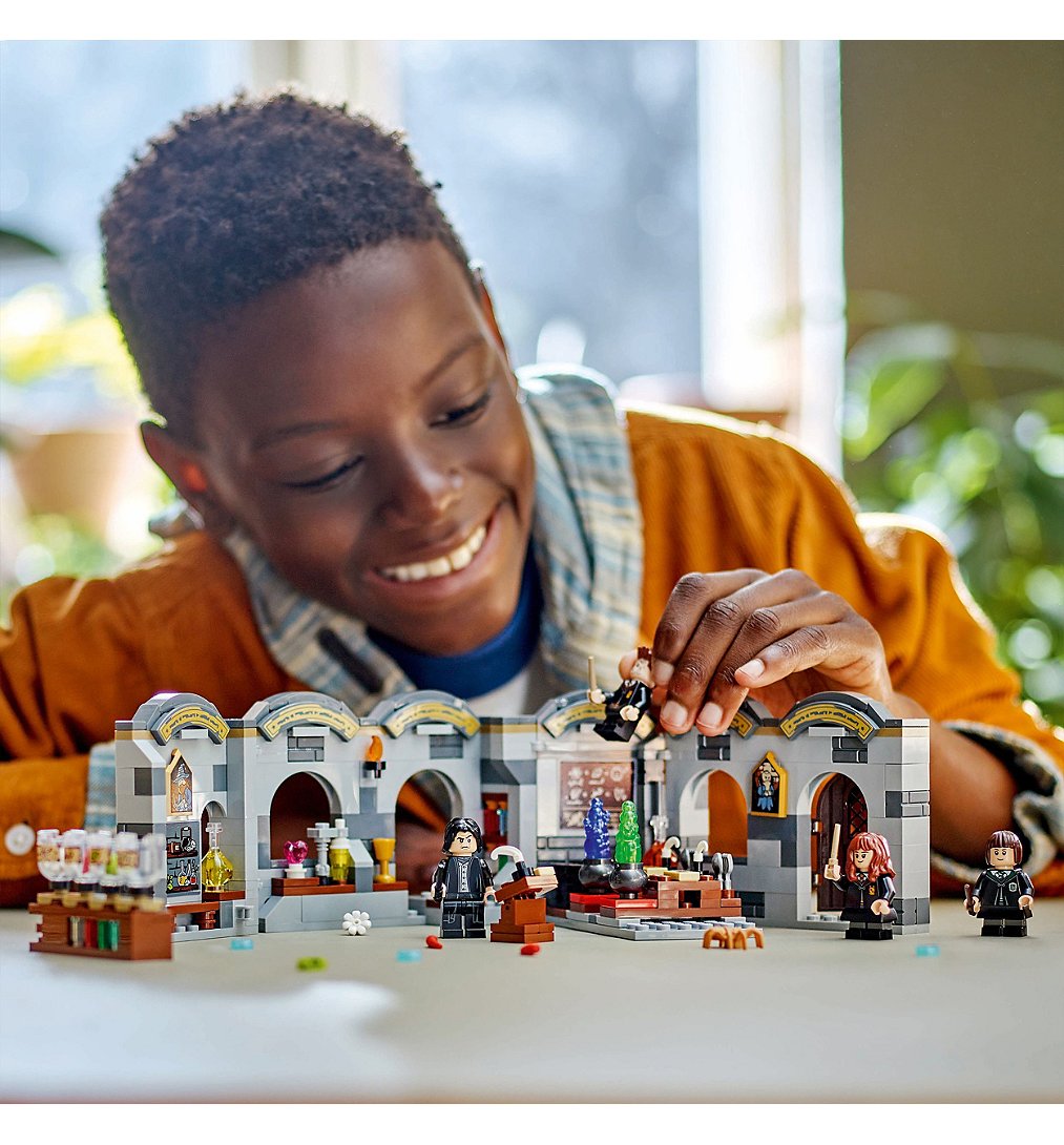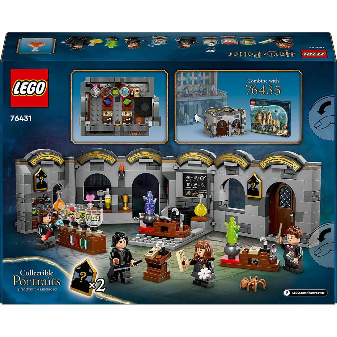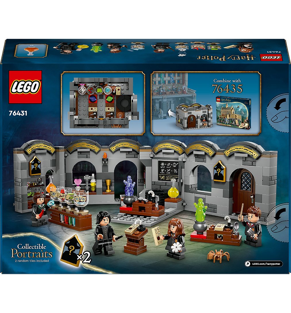 Invitez de jeunes sorcières, sorciers et moldus à assister à un cours de potions au château de Poudlard avec ce jouet LEGO Harry Potter à collectionner (76431) pour les enfants dès 8 ans. Il inclut une salle de classe à construire qui s’ouvre et regorge de détails réalistes : un tableau avec des instructions pour fabriquer des potions, des flacons d’ingrédients à verser dans le chaudron et d’autres accessoires pour stimuler le jeu. Il y a également 2 portraits de Poudlard (sur un total de 14 à collectionner) et les minifigurines du professeur Rogue et des élèves Hermione Granger, Pansy Parkinson et Seamus Finnigan pour inventer des histoires. Cette idée de cadeau magique est un formidable moyen d’initier les enfants passionnés de Harry Potter à l’univers du Monde des Sorciers en briques LEGO. Ce jouet Poudlard fait partie d’une collection de sets LEGO Harry Potter modulaires (vendus séparément) qui se combinent pour créer un château de Poudlard en briques LEGO détaillé.