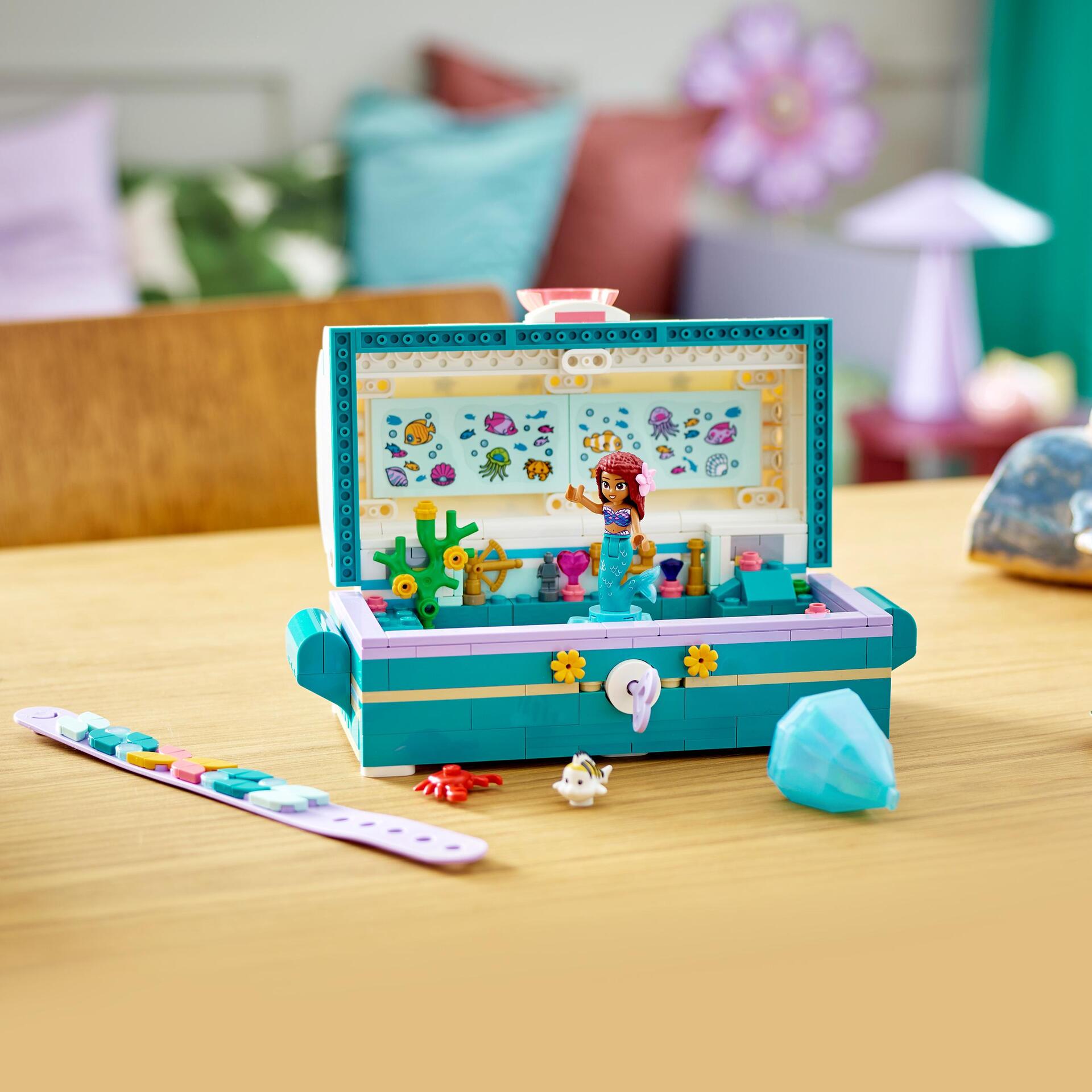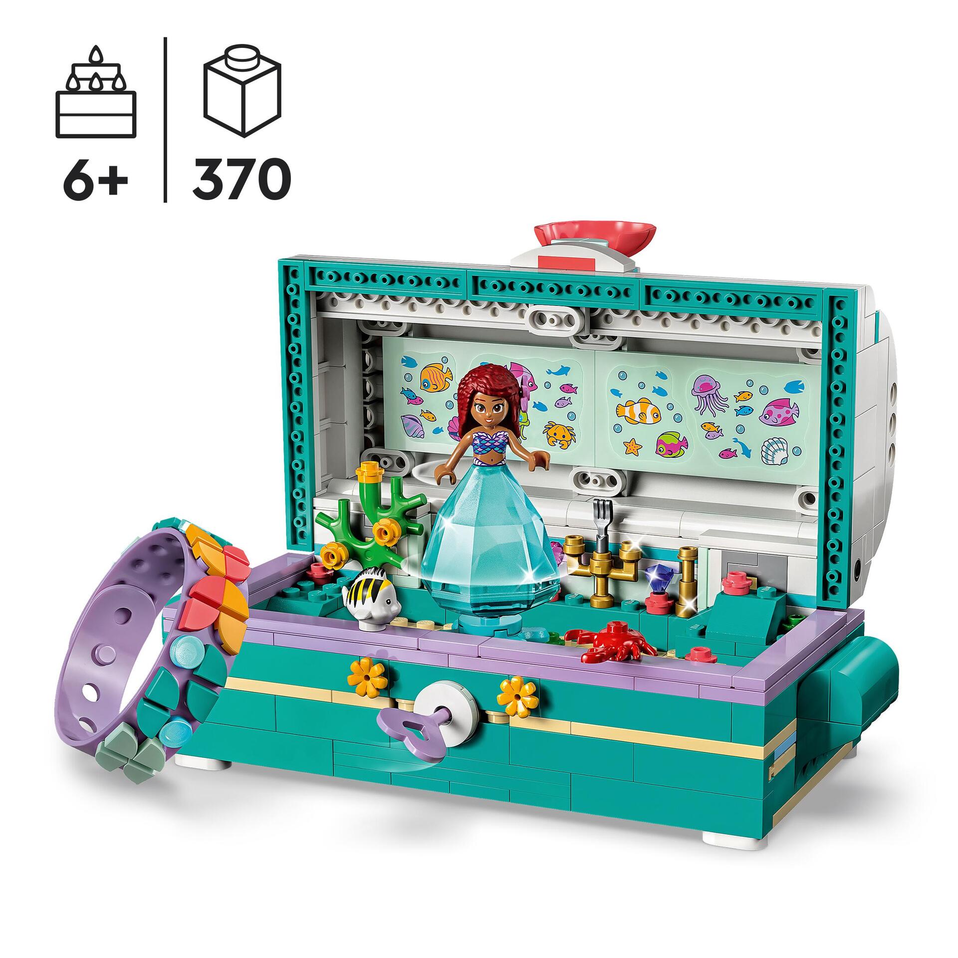 | La boîte contient | • Rangement malin – Offrez aux enfants de 6 ans et plus et aux fans de La Petite Sirène de Disney un cadeau qui stimule leur imagination avec Le coffre aux trésors d’Ariel LEGO® • Disney (43229)• Des éléments iconiques – Le set inclut un coffre aux trésors avec un couvercle qui s’ouvre et 2 compartiments secrets. Rempli d’objets vus dans le film, il inclut un bracelet LEGO® DOTS à 2 rangées et des tuiles DOTS pour le décorer• Personnages familiers – Le set inclut la mini-poupée LEGO® d’Ariel, inspirée du film en action réelle de Disney, ainsi que les figurines LEGO de Polochon et Sébastien, invitant au jeu de rôle• Cadeau d’anniversaire dès 6 ans – Ce set constitue un cadeau de qualité à offrir aux enfants passionnés par les films Disney, les loisirs créatifs et la construction LEGO®• Des bijoux en sécurité – Le coffre aux trésors mesure plus de 9 cm de haut, 19 cm de large et 9 cm de profondeur. Avec le bracelet LEGO® DOTS, il inspire des heures de jeu créatif• Une nouvelle façon de construire – L’application LEGO® Builder guide les enfants et leur permet de vivre une aventure de construction intuitive. Ils peuvent sauvegarder leurs sets, suivre leur progression, zoomer et faire pivoter les modèles en 3D• Des compétences importantes – Avec une construction détaillée, une mini-poupée LEGO® et 2 figurines LEGO d’animaux, ce set Disney favorise le jeu imaginatif et contribue à développer des compétences essentielles à travers le jeu• Qualité inégalée – Depuis 1958, les éléments LEGO® sont conformes aux normes de qualité industrielles les plus strictes, afin de garantir qu’ils s’assemblent toujours parfaitement• La sécurité avant tout – Les éléments LEGO® sont soumis à des tests de chute, de chaleur, d’écrasement et de torsion, puis analysés afin de s’assurer qu’ils répondent aux normes de sécurité les plus rigoureuses |