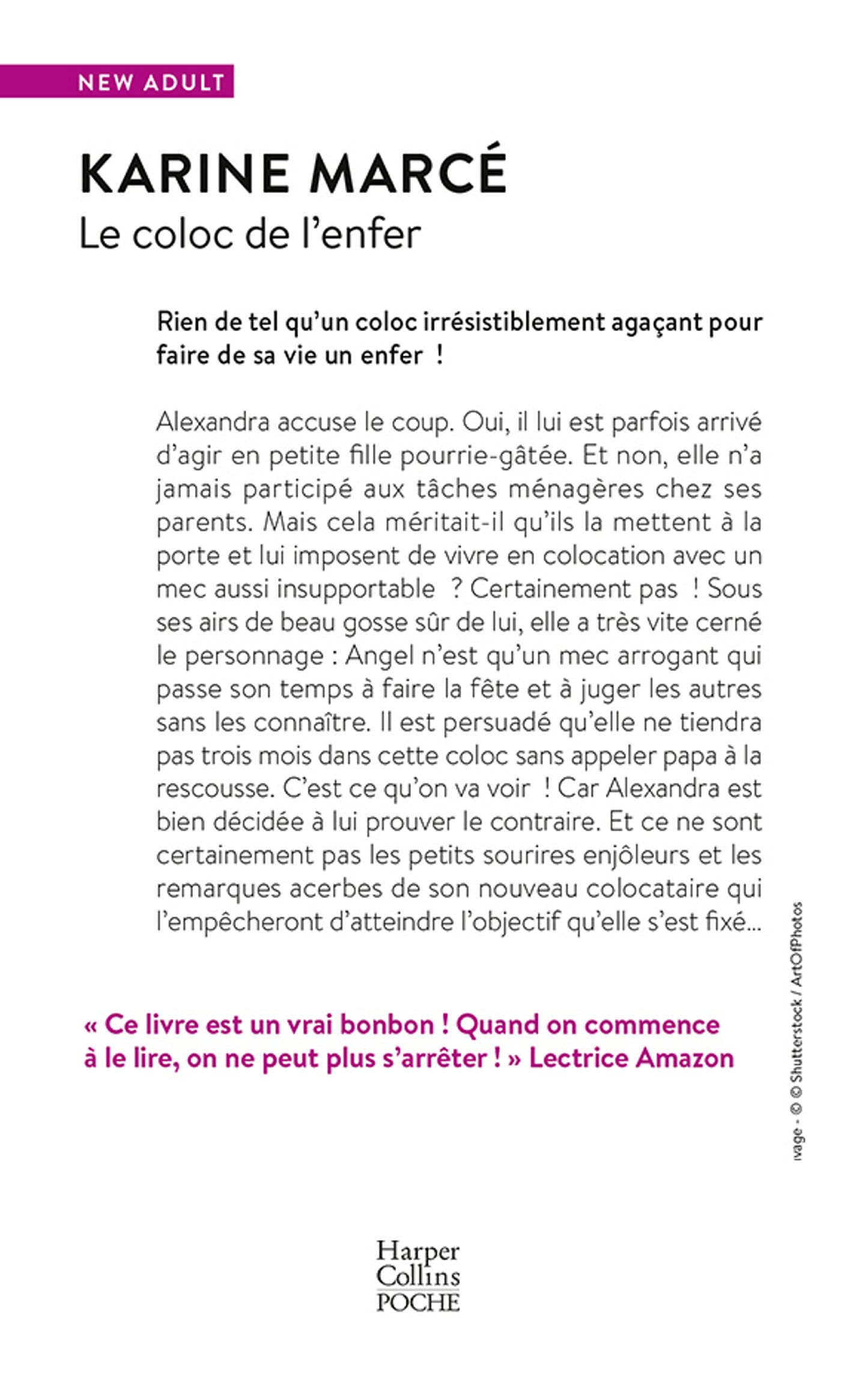 Alexandra accuse le coup. Oui, il lui est parfois arrivé d'agir en petite fille pourrie-gâtée. Et non, elle n'a jamais participé aux tâches ménagères chez ses parents. Mais cela méritait-il qu'ils la mettent à la porte et lui imposent de vivre en colocation avec un mec aussi insupportable ? Certainement pas ! Sous ses airs de beau gosse sûr de lui, elle a très vite cerné le personnage : Angel n'est qu'un mec arrogant qui passe son temps à faire la fête et à juger les autres sans les connaître. Il est persuadé qu'elle ne tiendra pas trois mois dans cette coloc sans appeler papa à la rescousse. C'est ce qu'on va voir ! Car Alexandra est bien décidée à lui prouver le contraire. Et ce ne sont certainement pas les petits sourires enjôleurs et les remarques acerbes de son nouveau colocataire qui l'empêcheront d'atteindre l'objectif qu'elle s'est fixé...