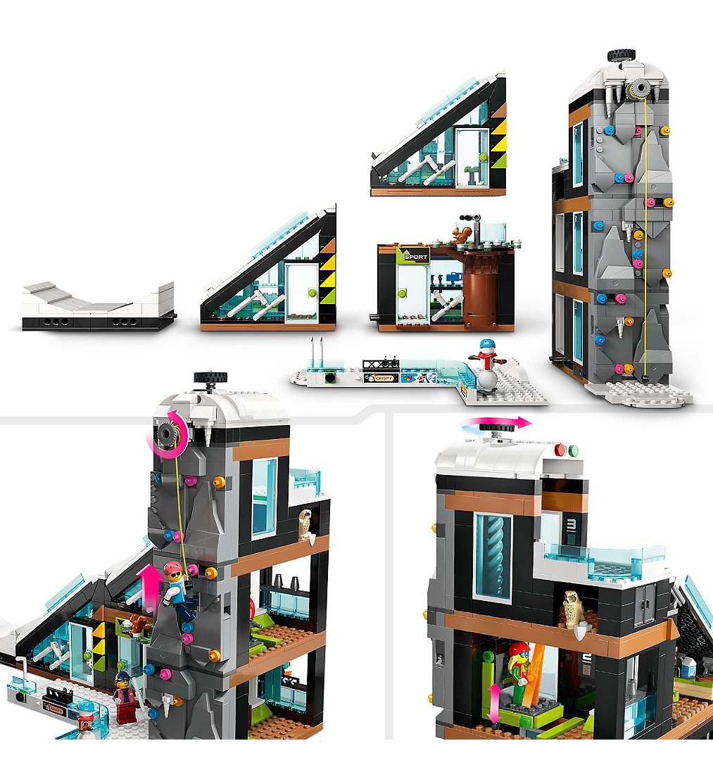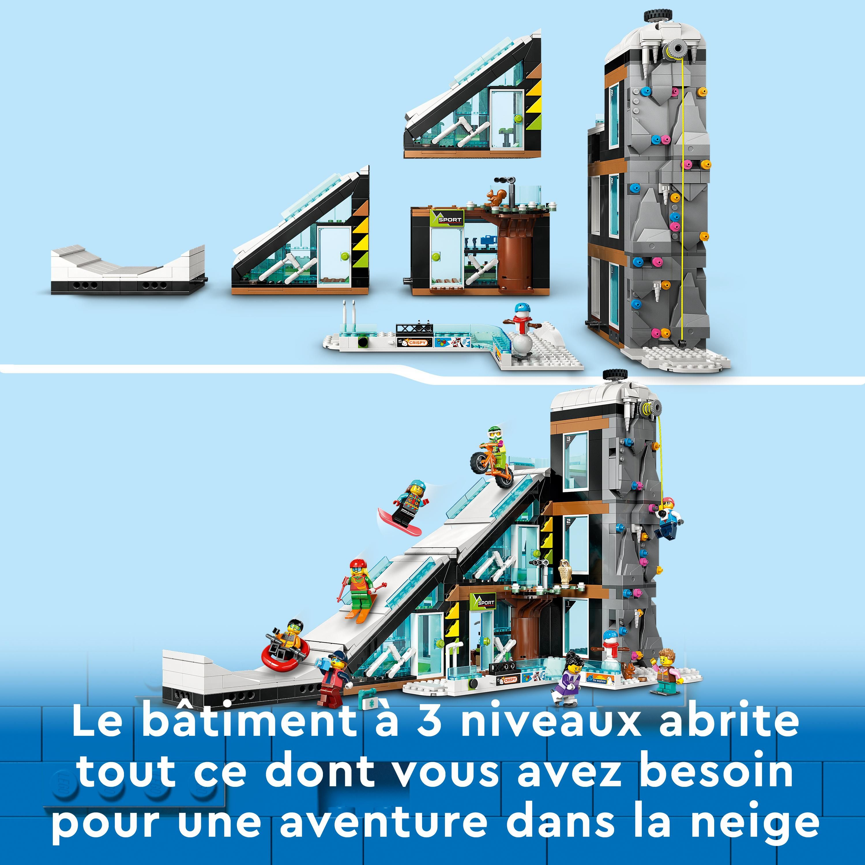 | Plus produit | Les enfants vont apprécier les activités dhiver proposées dans le set Le complexe de ski et descalade LEGO® City incluant 8 minifigurines et 2 animaux. |