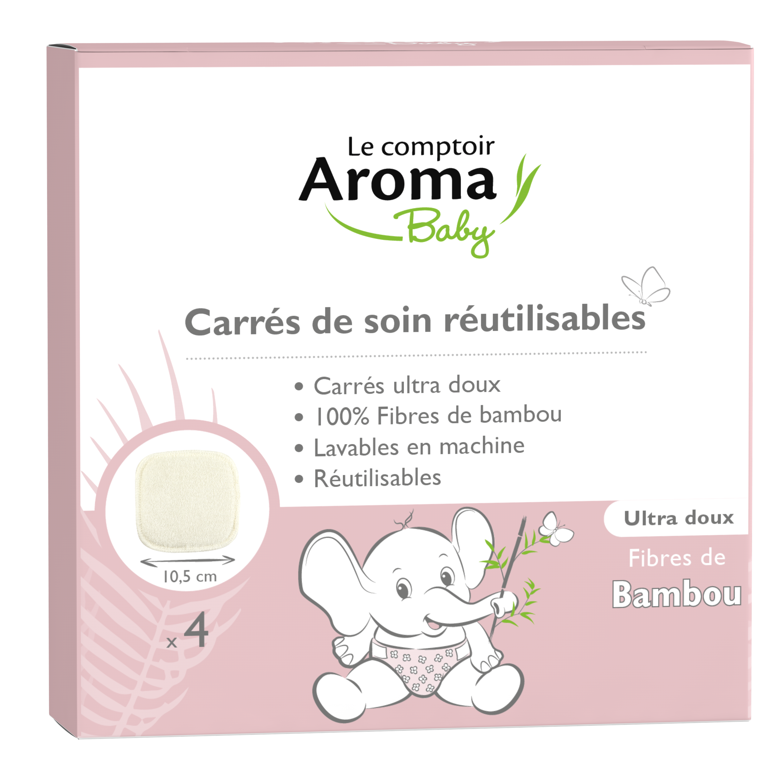 Le Comptoir Aroma Carrés de Soin Bambou Lavables Réutilisables x4