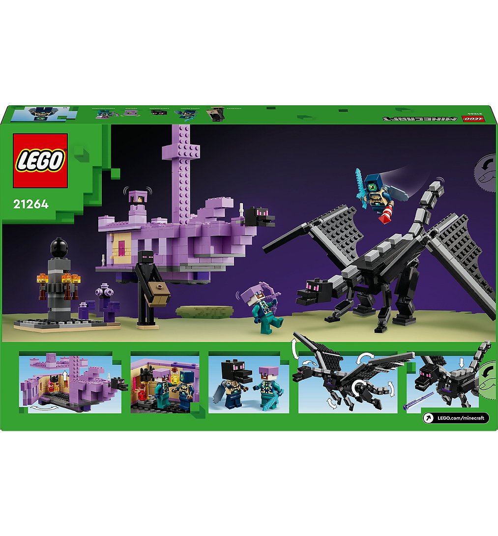 Le dragon et le navire de l’Ender (21264) est un set pour enfants garçons et filles inspiré du jeu vidéo Minecraft. Les personnages du jeu vivent d’incroyables aventures avec un dragon à bord d’un navire. C’est un beau cadeau à offrir à des enfants dès 8 ans raconteurs d'histoires et passionnés de jouets en briques. Les joueurs pénètrent dans le biome de l’End, où ils combattent le dragon de l'Ender. Tous les membres de ce modèle Minecraft articulé sont mobiles et réglables. Le navire de l’Ender dispose d’un intérieur équipé, accessible via le toit et les côtés ouvrants. La tête de dragon à la proue peut être retirée et utilisée comme un casque. À l’intérieur, les enfants peuvent trouver un alambic avec des potions. Le set inclut un explorateur de l’Ender doté d’élytres et d’une fusée de feu d'artifice, un chevalier de l’Ender, un Shulker et un Enderman, ainsi que le précieux œuf de dragon. Les constructeurs peuvent zoomer, faire pivoter les modèles en 3D et suivre leur progression avec l’appli LEGO Builder ludique et intuitive.