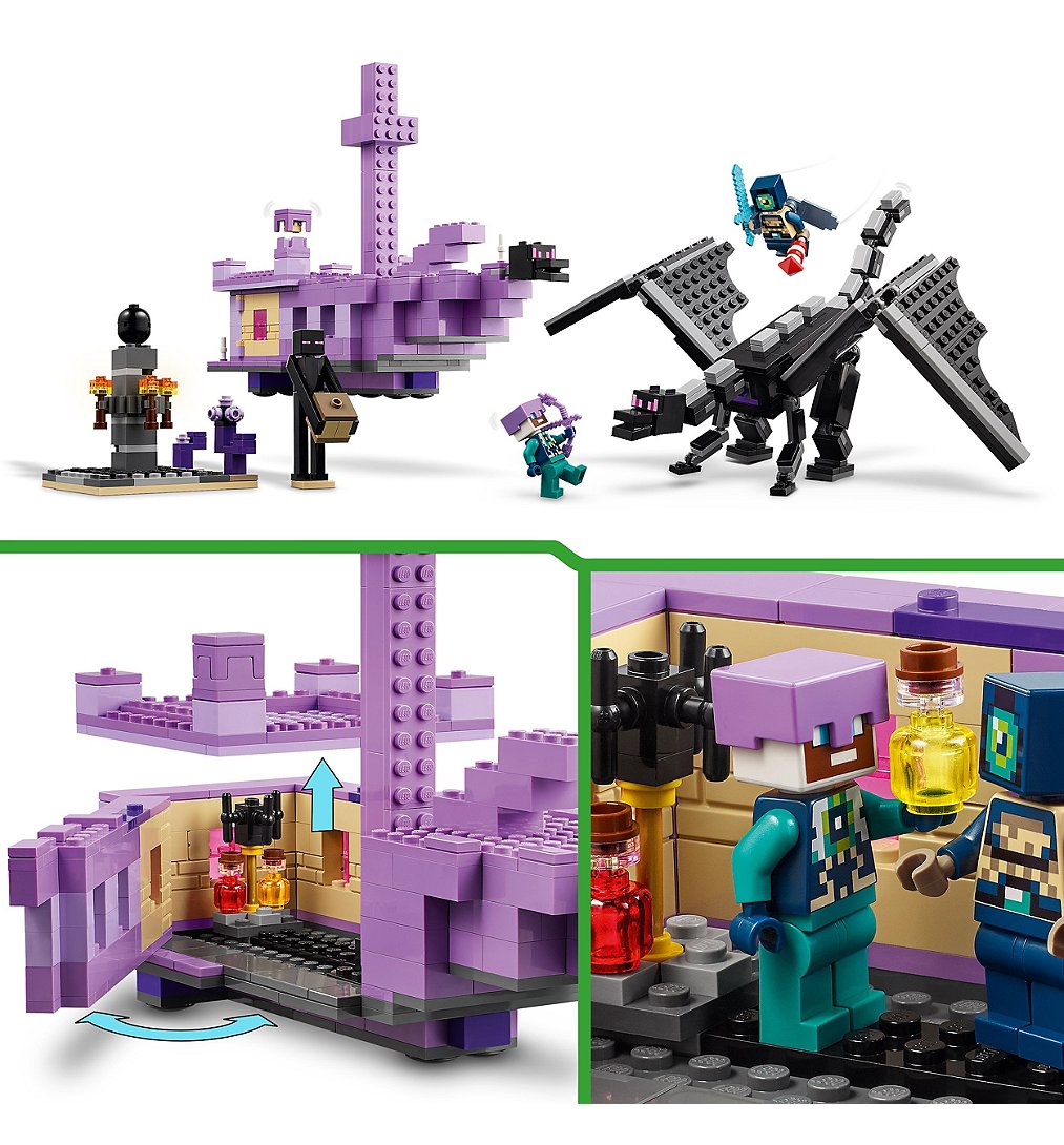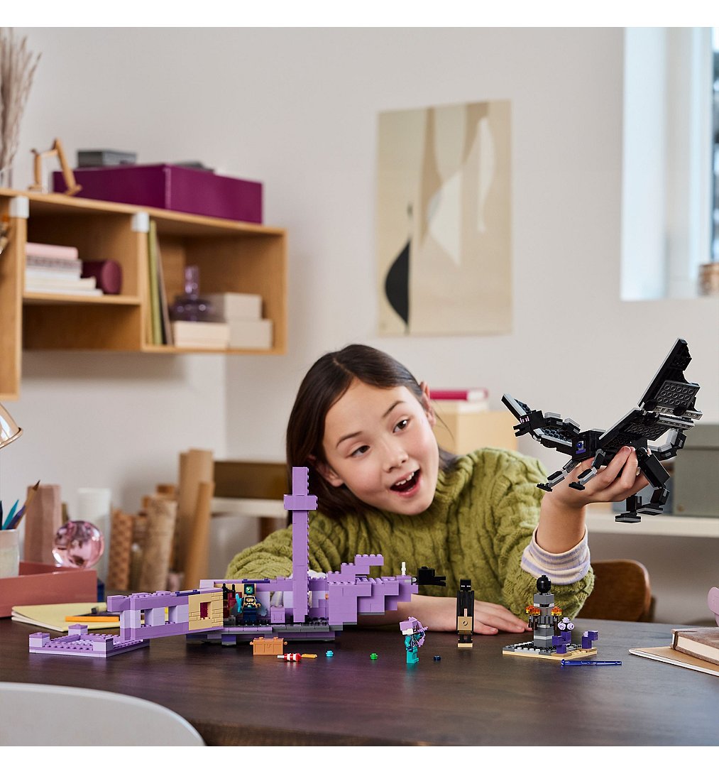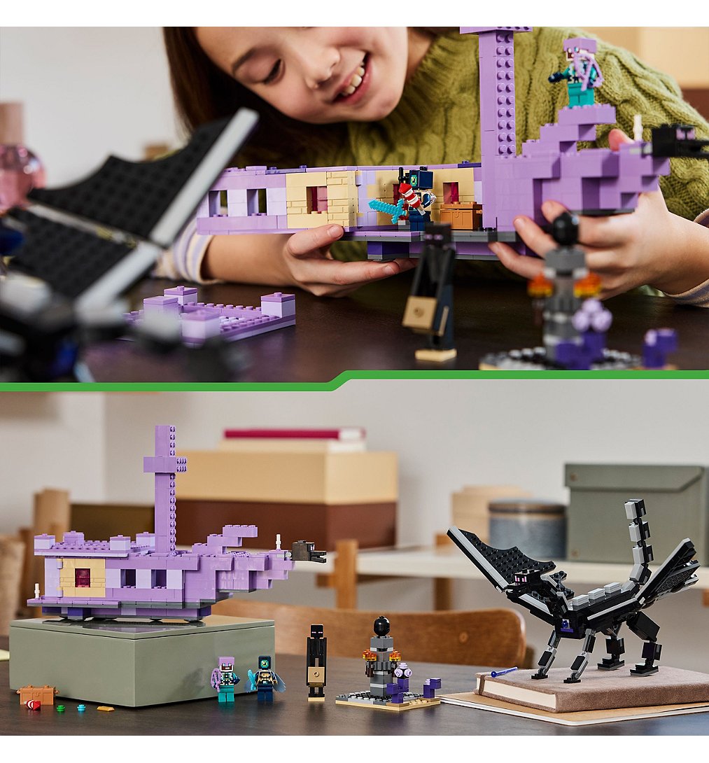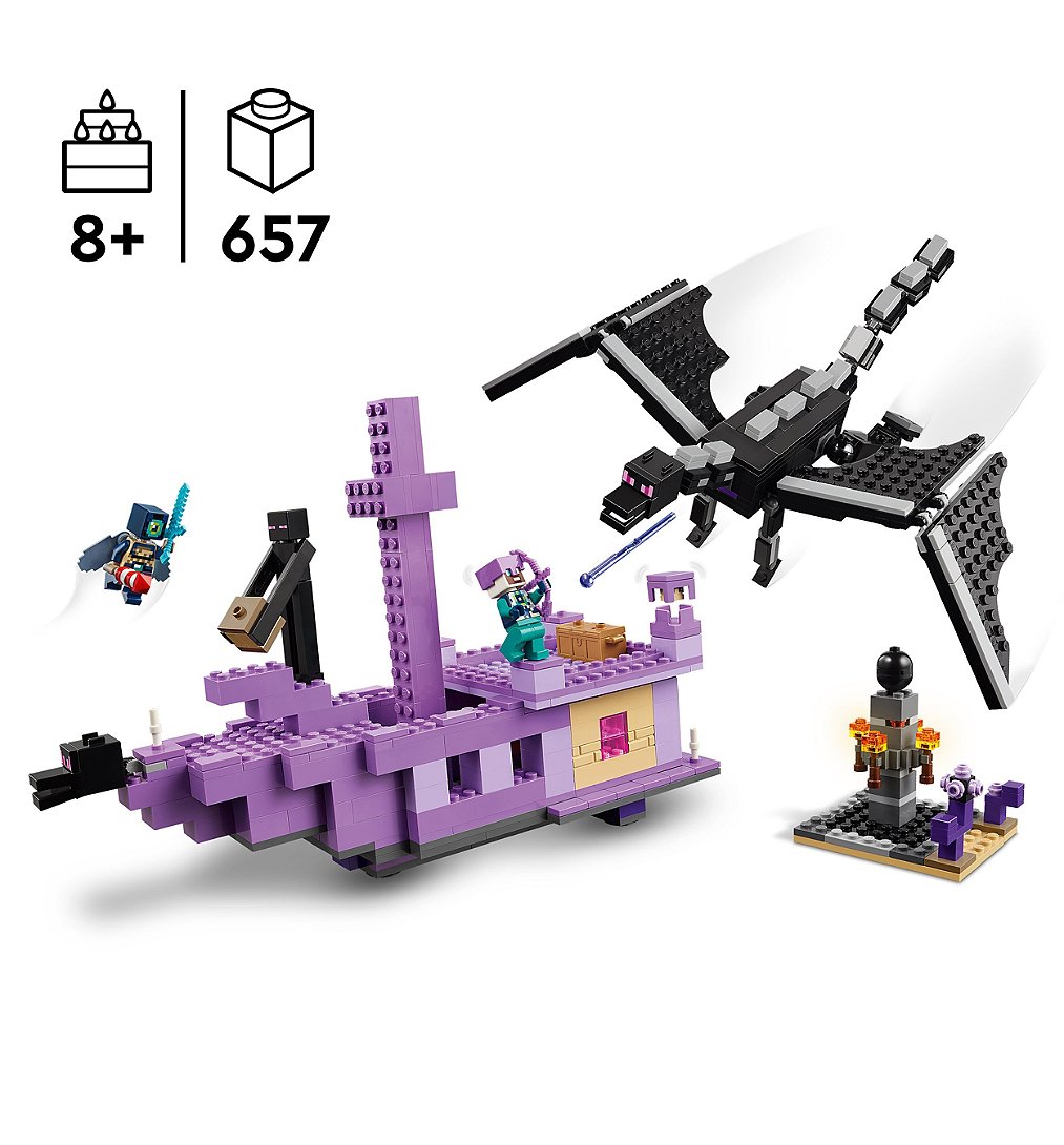 | Plus produit | Invitez les enfants à vivre une aventure passionnante dans le biome de lEnd avec ce set Le dragon et le navire de lEnder LEGO® Minecraft®. |