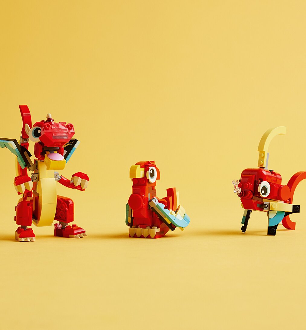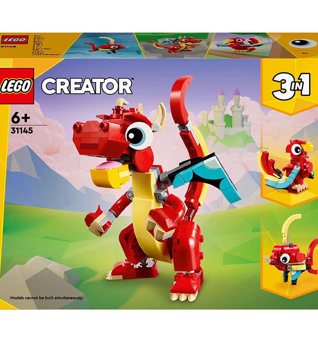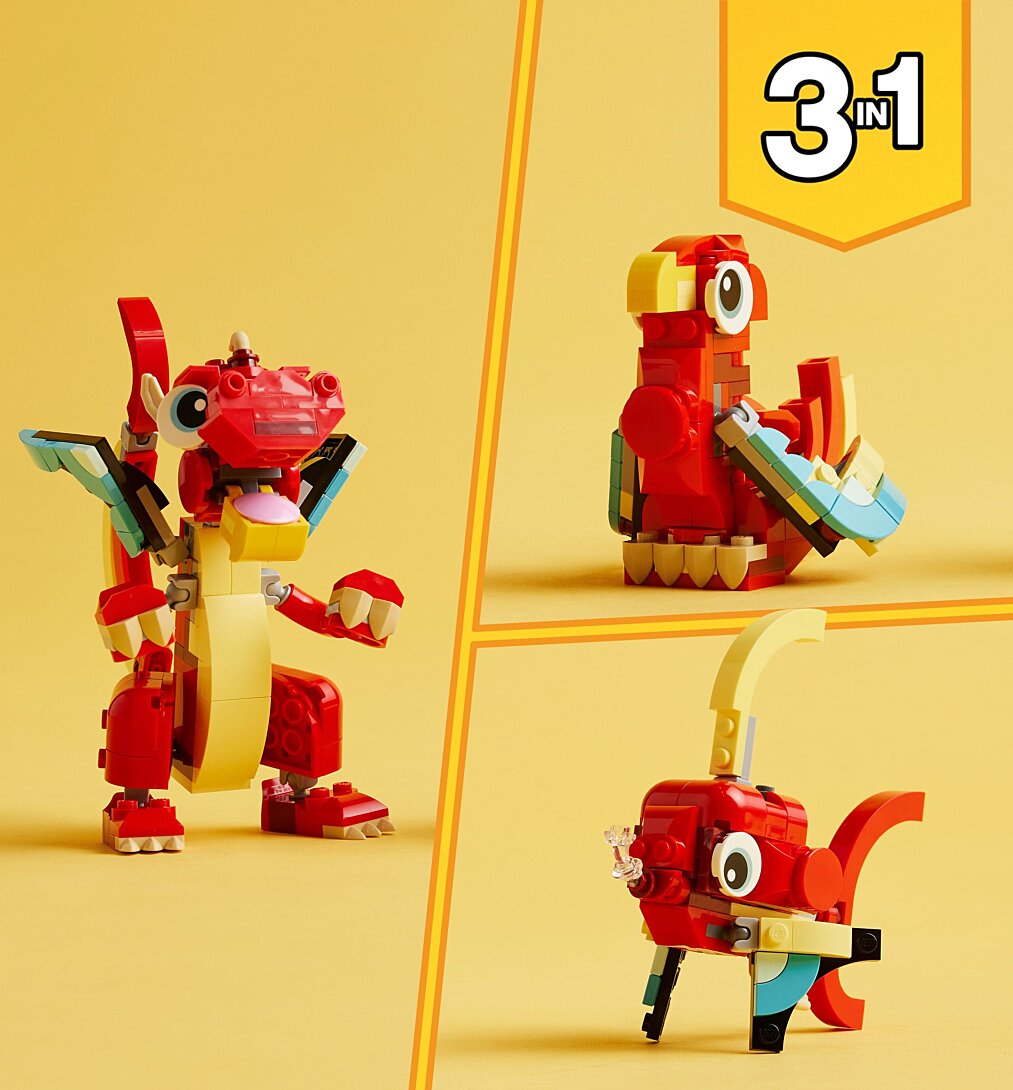 | Plus produit | Les enfants partent à laventure dans un pays magique avec ce dragon rouge LEGO® Creator 3-en-1, à transformer en phénix ou en poisson. |