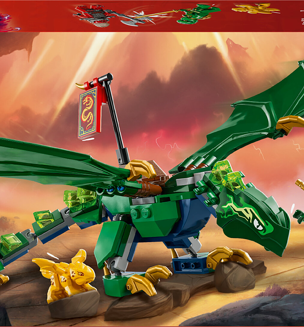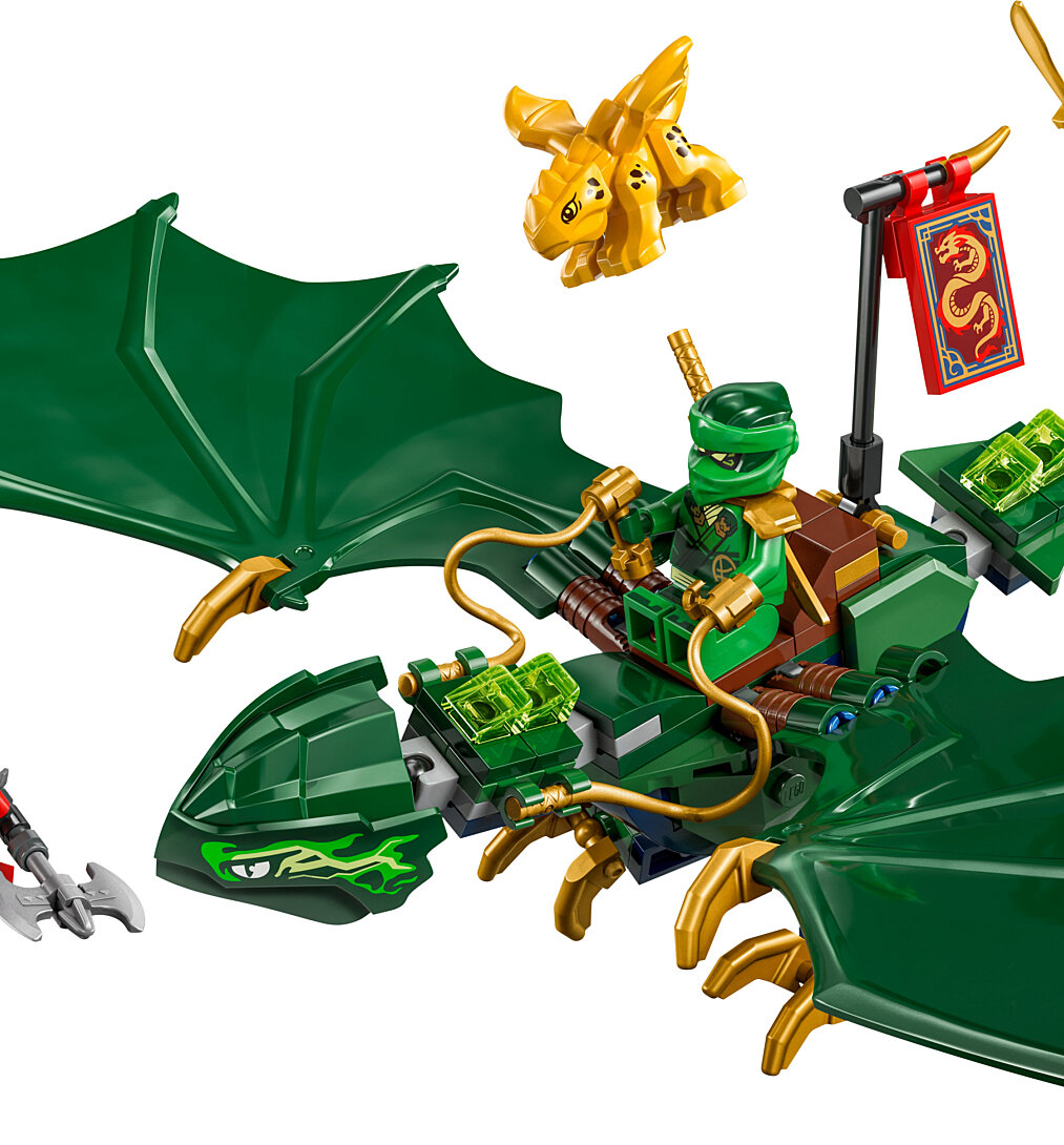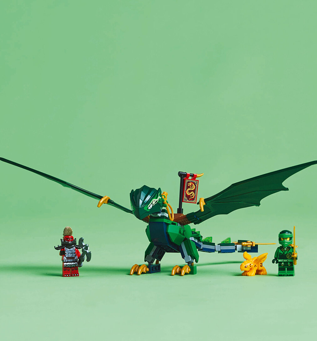 | Plus produit | Set LEGO® NINJAGO® Le dragon vert de la forêt de Lloyd débordant d’action pour enfants, composé de 2 minifigurines et de 2 dragons. |