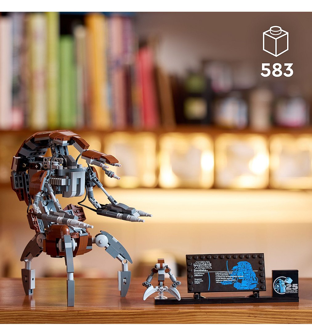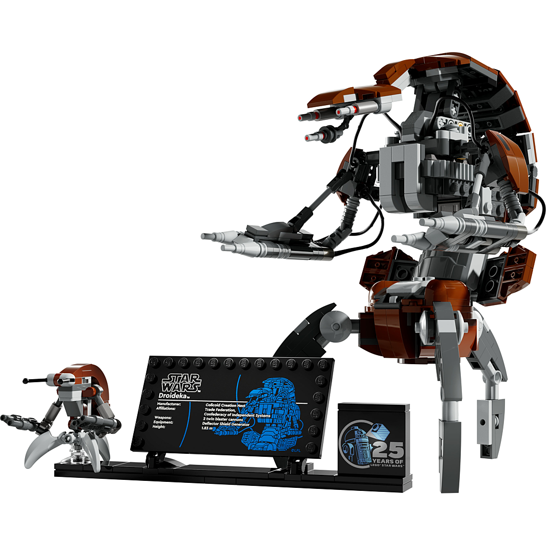 Célébrez le 25e anniversaire de Star Wars : La Menace fantôme et des sets LEGO Star Wars avec cette figurine de Droïdeka LEGO à collectionner (75381). Ce droïde destroyer LEGO à construire et exposer pour adultes fait revivre l’invasion de Naboo dans Star Wars : La Menace fantôme et Star Wars : The Clone Wars. Il inclut des détails réalistes, comme les bras qui bougent d’avant en arrière pour tirer et des pattes amovibles à fixer pour lui redonner sa forme de boule emblématique. Le support avec une plaque descriptive, une brique spéciale 25e anniversaire de LEGO Star Wars et un emplacement pour le petit Droïdeka LEGO ajoute une touche finale à ce set de construction d’exception. Ce modèle à construire fait partie d’une collection de sets LEGO Star Wars (vendus séparément) pour les adultes en quête d’activités relaxantes. Retrouvez les instructions étape par étape dans la boîte et l’application LEGO Builder propose des outils numériques de zoom et de rotation.
