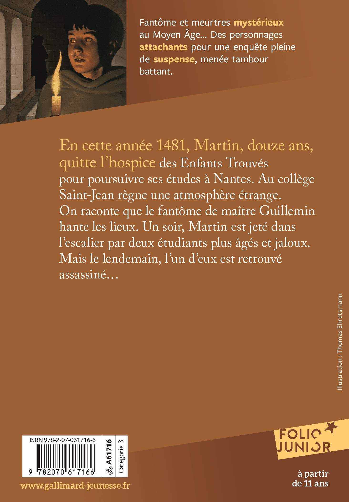Pour Martin, l'année 1481 va être une année terrible. Ayant quitté l'orphelinat d'Angers où il a été élevé, il vient d'arriver à l'université de Nantes. Il n'a que douze ans, et cela éveille les soupçons : a-t-il obtenu une faveur ? Sa vie devient difficile. Son maître ne semble pas l'aimer, et au collège Saint-Jean où il est hébergé rôde, dit-on, le mystérieux fantôme de maître Guillemin. Les autres étudiants, beaucoup plus âgés, ne sont pas très tendres avec lui. Un soir, il est même jeté dans l'escalier par deux d'entre eux. Mais le lendemain matin, on trouve l'un de ces étudiants assassiné...