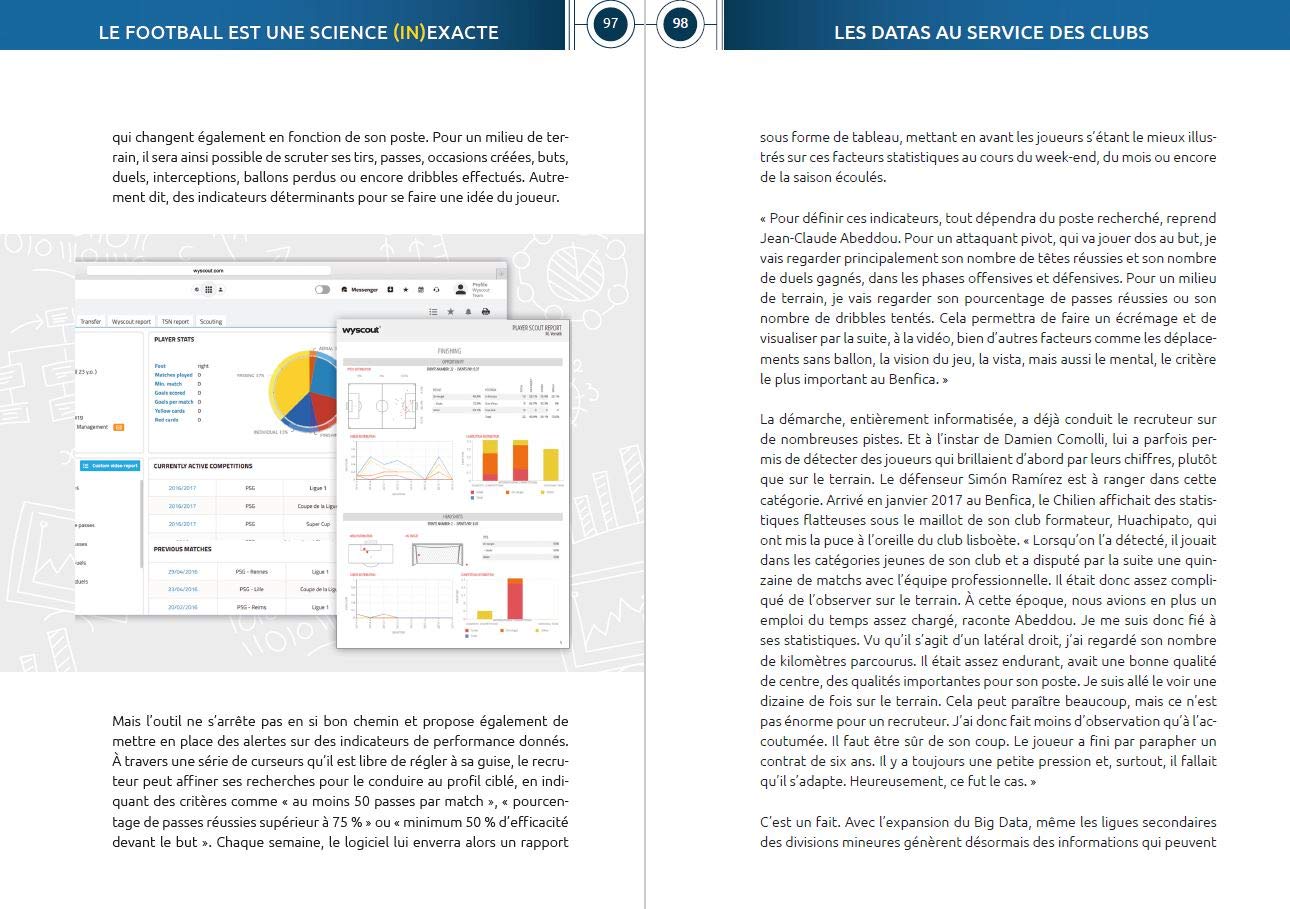 Quel est le point commun entre le titre de champion d'Angleterre conquis par Leicester en 2016, le sacre de l'Allemagne à la Coupe du monde 2014 et la victoire des modestes Danois de Midtjylland contre Manchester United lors de la Ligue Europa 2016 ? Au-delà de représenter d'incommensurables exploits footballistiques, ces succès ont en partie été bâtis à l'aide de chiffres, de statistiques et autres algorithmes astucieusement utilisés par des scientifiques intégrés au sein même de ces formations. Passées au peigne fin, les « datas » deviennent en effet des armes agissant au service de la performance. Une fois recoupées, décortiquées, comparées, hiérarchisées, ces caractères sont capables de révéler toutes les parcelles du jeu d'une équipe, ses forces et évidemment ses failles. Entraîneurs, directeurs sportifs, journalistes, analystes, mathématiciens, fournisseurs de contenu, nous allons nous intéresser à ces acteurs qui ont contribué à la « data-fication » de ce sport et lui ont permis d'évoluer dans une logique toujours plus tournée vers la performance. Amateurs de football, vous apprendrez à exploiter simplement ces données et deviendrez incollable sur les statistiques de votre équipe et de vos joueurs préférés. Professionnels ou amateurs, bienvenue dans la matrice du ballon rond !