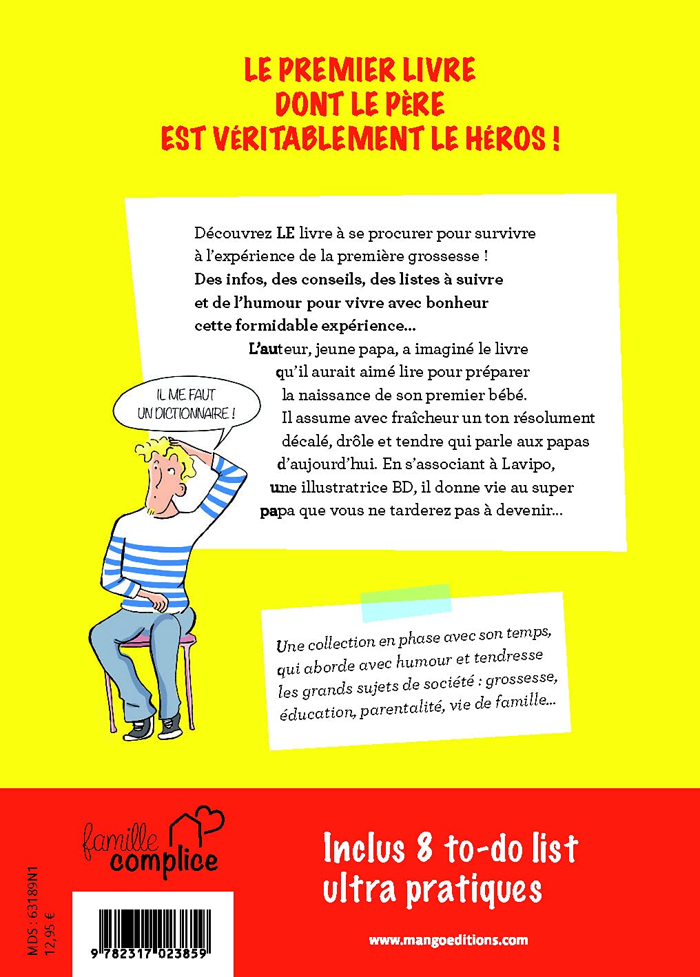 Découvrez LE livre à se procurer pour survivre à l'expérience de la première grossesse ! Des infos, des conseils, des listes à suivre et de l'humour pour vivre avec bonheur cette formidable expérience... L'auteur, jeune papa, a imaginé le livre qu'il aurait aimé lire pour préparer la naissance de son premier bébé. Il assume avec fraîcheur un ton résolument décalé, drôle et tendre qui parle aux papas d'aujourd'hui. En s’associant à Lavipo, une illustratrice BD, il donne vie au super papa que vous ne tarderez pas à devenir...