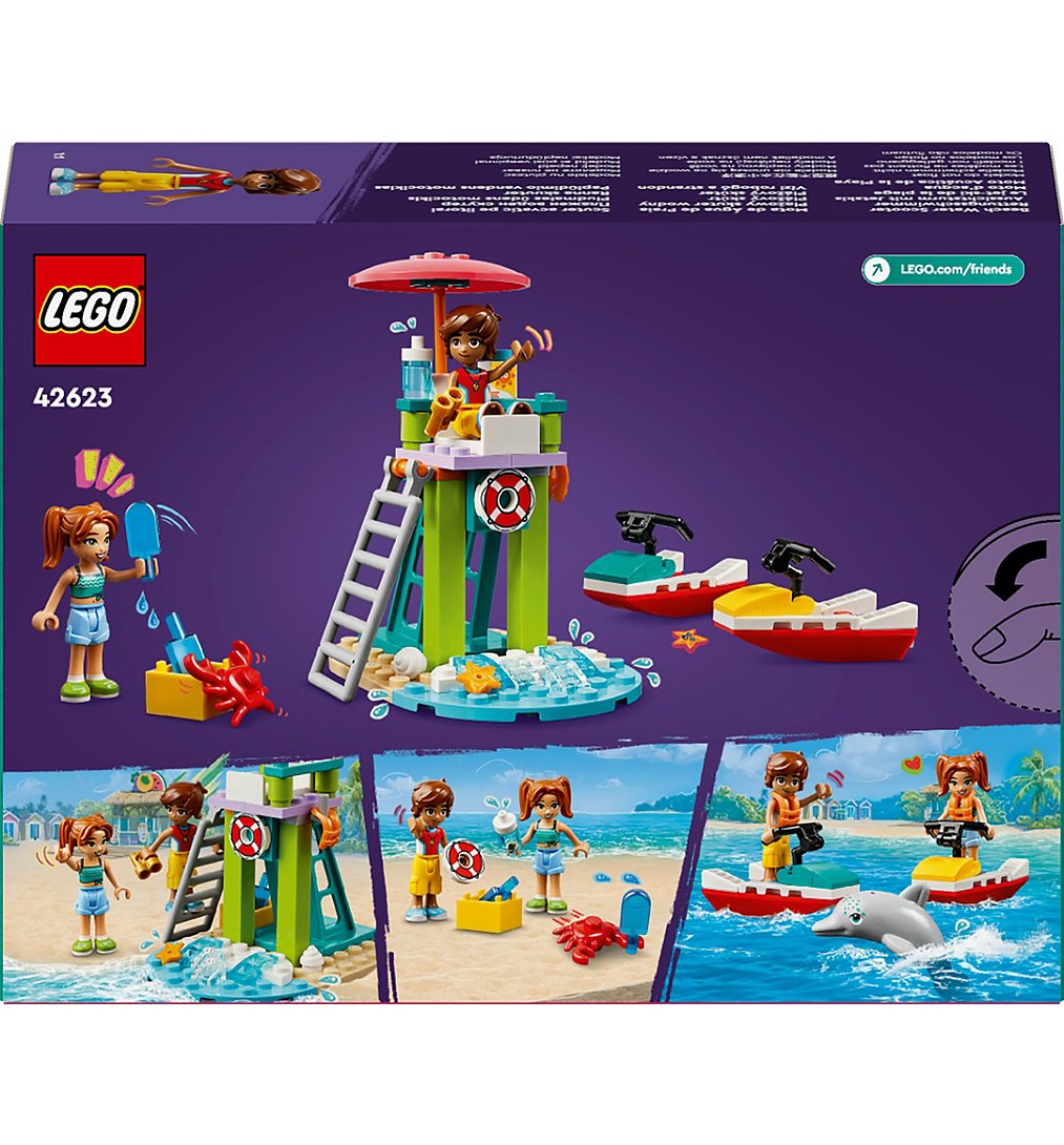 Plus produit Le jet-ski de la plage LEGO® Friends est un jouet débordant dimagination pour enfants. Il inclut 2 jet-skis, 2 mini-poupées, un dauphin et un crabe.