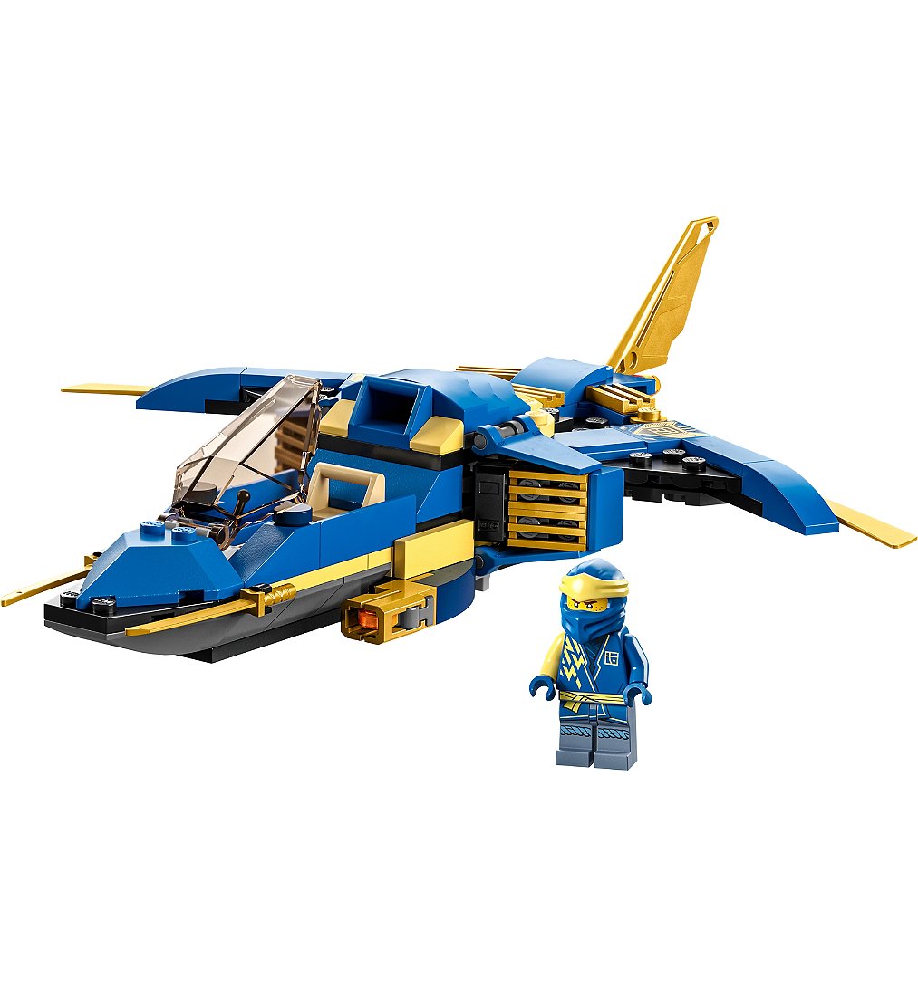 | Plus produit | Les enfants peuvent mettre en scène de formidables aventures aériennes avec ce jet ninja évolutif, doté de 2 canons à tenons et dune minifigurine de Jay dans le cockpit. |