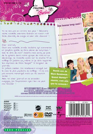Cher Journal, C'est une nouvelle année scolaire qui commence et j'espère qu'elle va être pleine de surprises ! Que te dire de moioe J'adore mes amis, je joue de la guitare dans notre groupe de rock et ça déménage. Je travaille aussi sur la chaîne TV du collège et j'adore ça, même si je dois supporter les caprices de Miss Raquel à longueur de journée. Et j'allais oublier... J'ai totalement craqué sur le mec le plus populaire du collège - il ne m'a pas encore remarqué mais ça ne saurait tarder ! Avec toi cher journal et ce bracelet magique, j'ai l'impression que rien ne peut me résister.