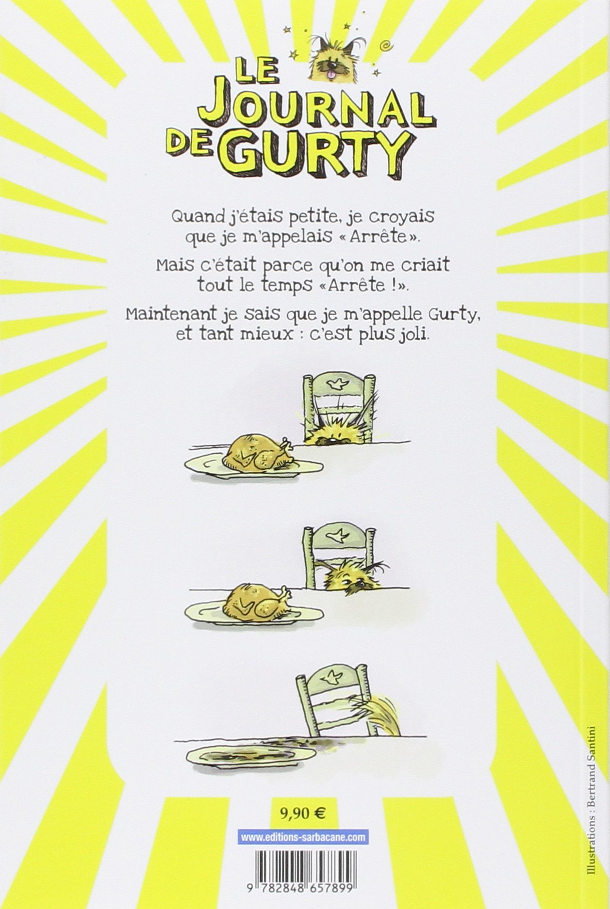 Hello, moi, c'est Gurty. Quand j'étais petite, je croyais que je m'appelais Arrête, mais c'est parce que je faisais tout le temps des bêtises et que mon humain me criait toujours arrête. Maintenant, je sais que je m'appelle Gurty, et tant mieux, c'est bien plus joli. Aujourd'hui, avec Gaspard, on a pris le train pour la Provence. Ah, ma maison de Provence ! Je pourrais la reconnaître les yeux fermés ! Le vestibule sentait toujours le fenouil, le salon toujours le thym, la cuisine toujours l'andouille et mon panier toujours le chien. Voilà ! Nous étions en vacances. L'aventure et la rigolade allaient pouvoir commencer.