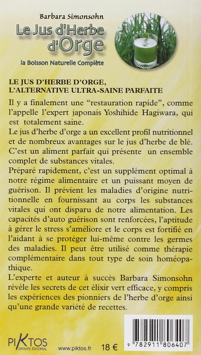 | Libellé | Le Jus d'Herbe d'Orge - La Boisson Naturelle Complète (Broché) |