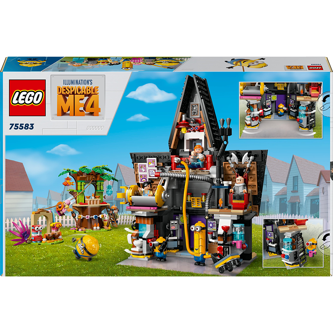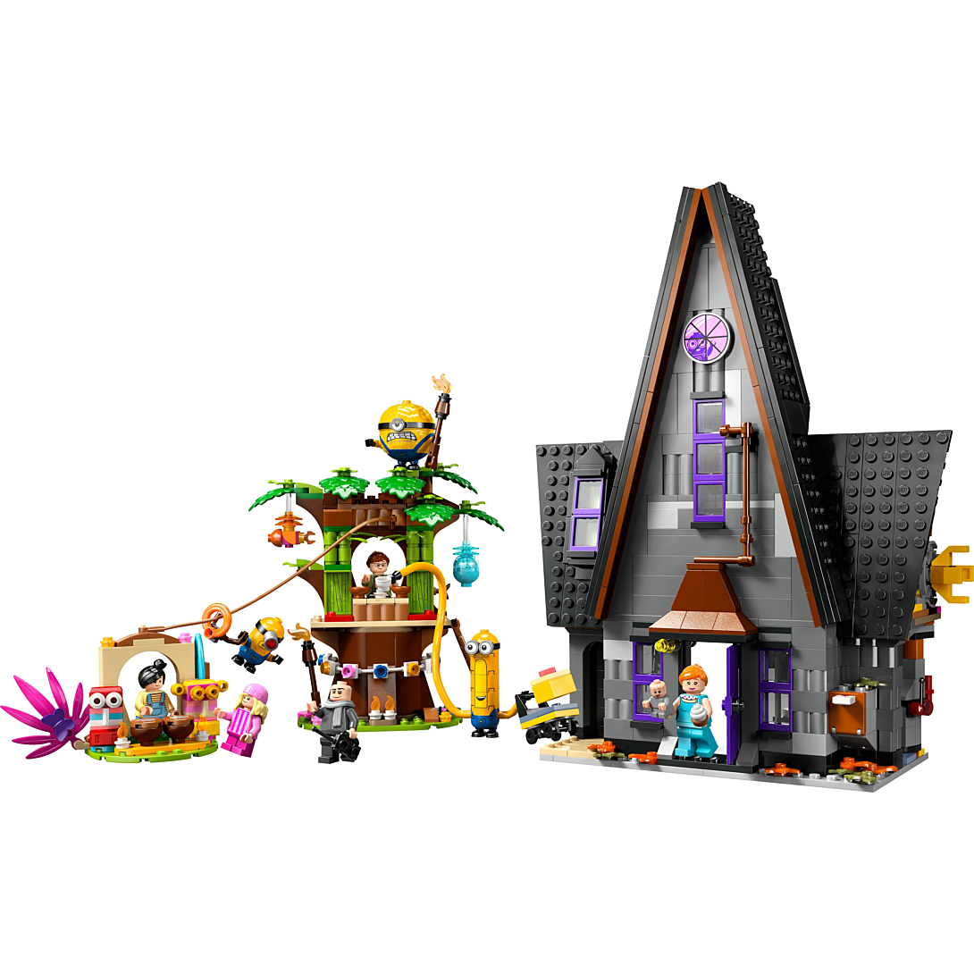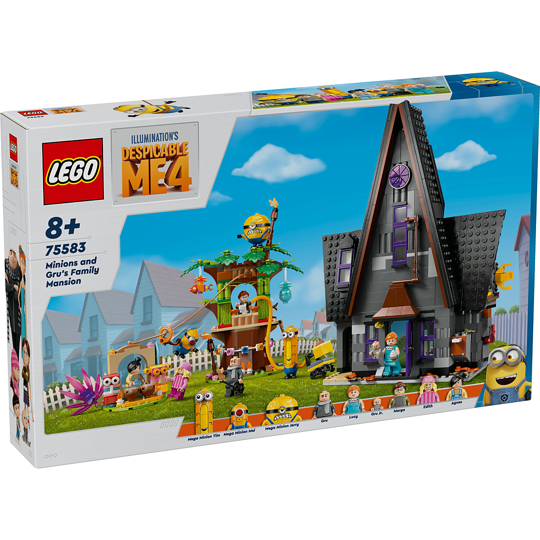 Rejouez des scènes du film avec le set LEGO Moi, Moche et Méchant 4 Le manoir familial des Minions et de Gru (75583), qui inclut une maison et une cabane dans l’arbre. Ce jouet à construire pour enfants dès 8 ans regorge de détails, pour le plaisir des fans de Moi, Moche et Méchant. La maison de Gru contient des éléments culte des films, comme le canapé rouge, la cheminée, le lit-fusée, le laboratoire des Minions empli de gadgets et des unités rotatives avec des toilettes et une boîte à biscuits. À côté de la maison se trouve la cabane dans l’arbre colorée des filles. La salle à manger est reliée par une tyrolienne à un espace festif (avec des bongos) et à une cachette décorée sous la plateforme, avec des fleurs, des jouets et des bougies. Il y a 6 minifigurines - Gru, Lucy, Margo, Edith, Agnès et Bébé - et 3 grandes figurines de Minions à construire : Mel, Jerry et Tim. Ce set regorge de personnages et d’accessoires à explorer et constitue le cadeau parfait pour les enfants.