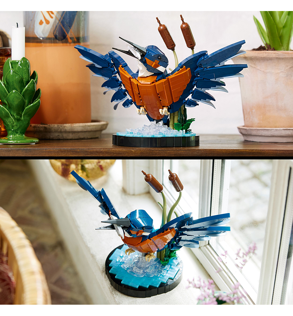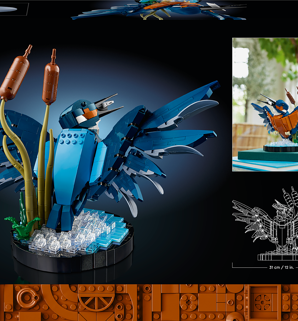 Créez un élément de décoration intérieure remarquable avec cet ensemble de construction LEGO pour adultes L'ensemble d'icônes LEGO Le Martin-pêcheur (10331) est un cadeau idéal pour la maison ou le bureau qui sera apprécié par tous les amoureux des oiseaux, un projet passionnant pour les constructeurs LEGO de tous âges et un passe-temps créatif amusant pour les débutants comme pour les experts Ce kit de maquette vous permet de fabriquer un Martin-pêcheur, un oiseau connu pour son plumage extraordinaire et ses incroyables talents de chasseur, représenté émergeant de l'eau avec un poisson fraîchement pêché Cette décoration d'intérieur comprend un décor avec des roseaux à construire et sert également de présentoir Positionnez la tête et les griffes de l'oiseau pour créer votre pose préférée, avant de l'exposer comme accessoire de chambre ou de salon Découvrez un espace de détente avec la gamme inspirante de jeux de construction créatifs LEGO spécialement conçus pour les adultes L'application LEGO Builder offre une version numérique des instructions de construction de cet ensemble.
