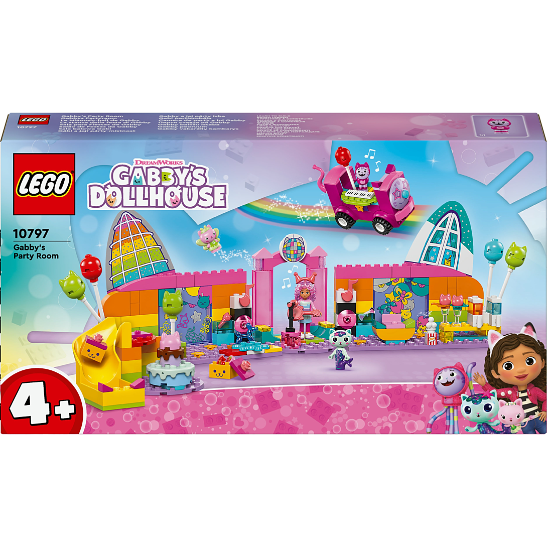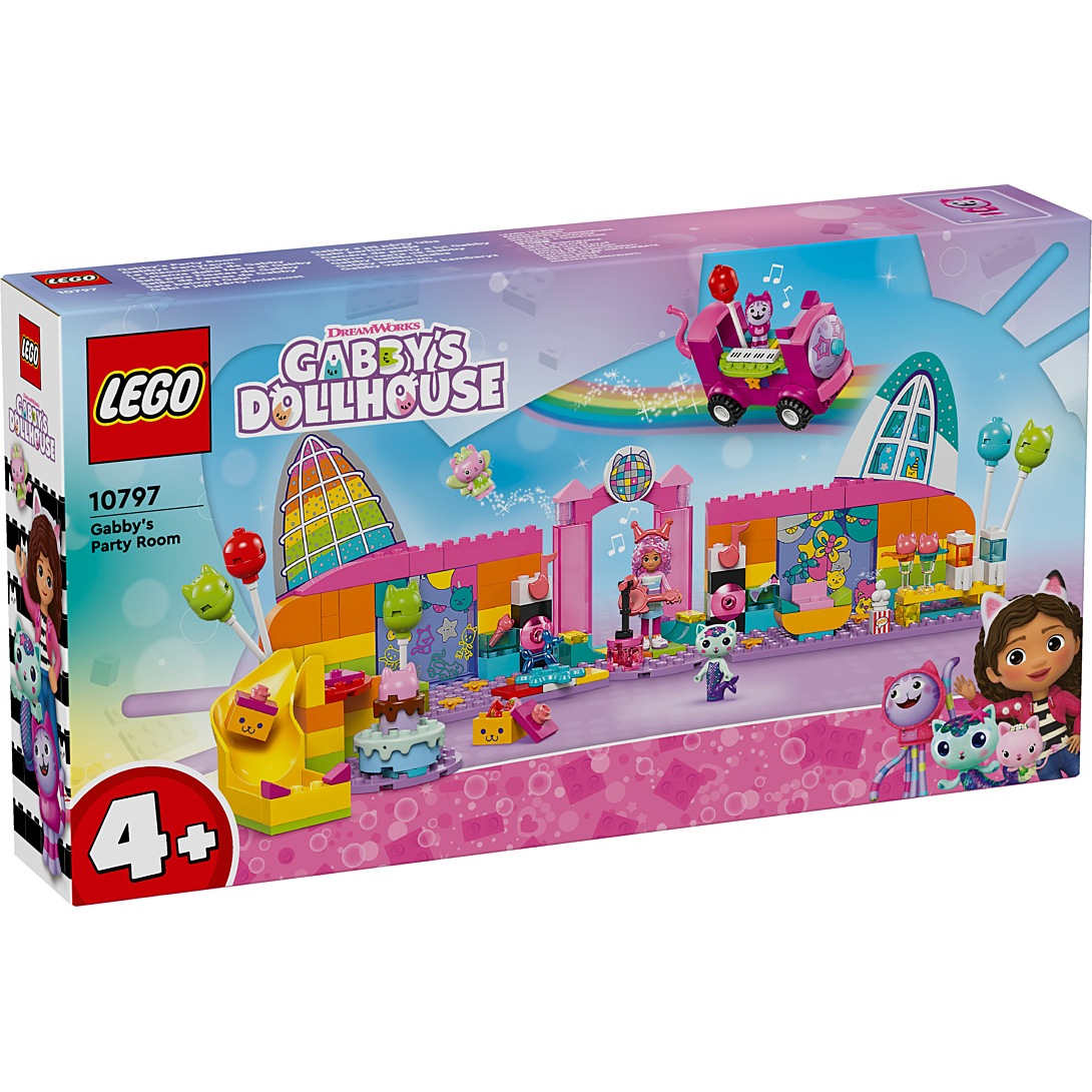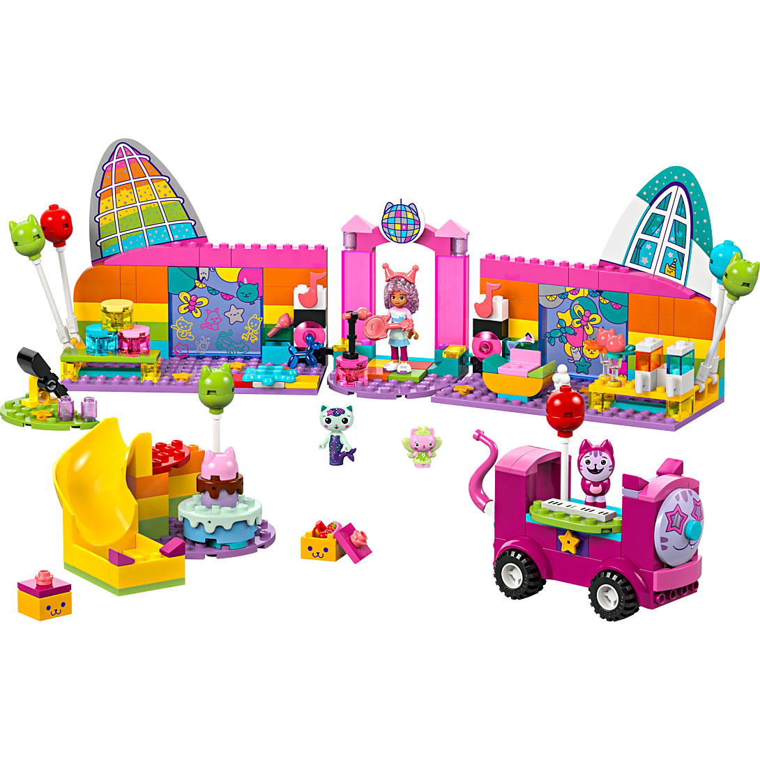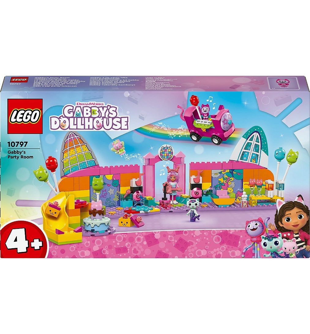 Le Miaousic-hall de Gabby (10797) est un set LEGO d’exception pour les fans de Gabby et la maison magique de DreamWorks Animation. Il améliore la confiance, la concentration et les capacités à résoudre des problèmes des enfants dès 4 ans. Ce jouet de construction LEGO pour filles et garçons est fait pour faire la fête et plus encore ! Avec Gabby, Daniel James « DJ » Miaou, Fée Minette, Marine et de nombreux accessoires festifs - dont un disco-bus à pousser doté d’un clavier, une piste de danse tournante, une guitare, 2 micros et une boule disco - le décor est planté pour s’amuser ! Le set LEGO inclut des ballons et des rollers pour la roller disco, du pop-corn et 2 verres à granité pour l’espace détente, ainsi qu’une catapulte et des boîtes de conserve pour le chamboule-tout. Il y a un gâteau pour Gabby et des paquets avec des cadeaux livrés par le toboggan. Les garçons et les filles pourront laisser libre cours à leur imagination, et inventer des histoires captivantes en lien avec tous ces éléments.