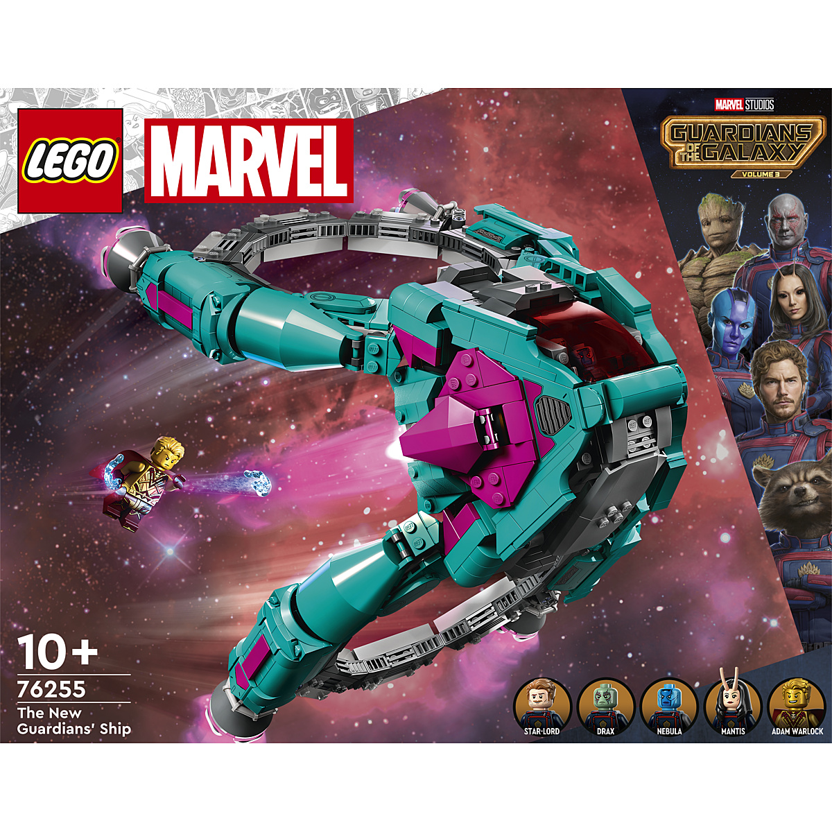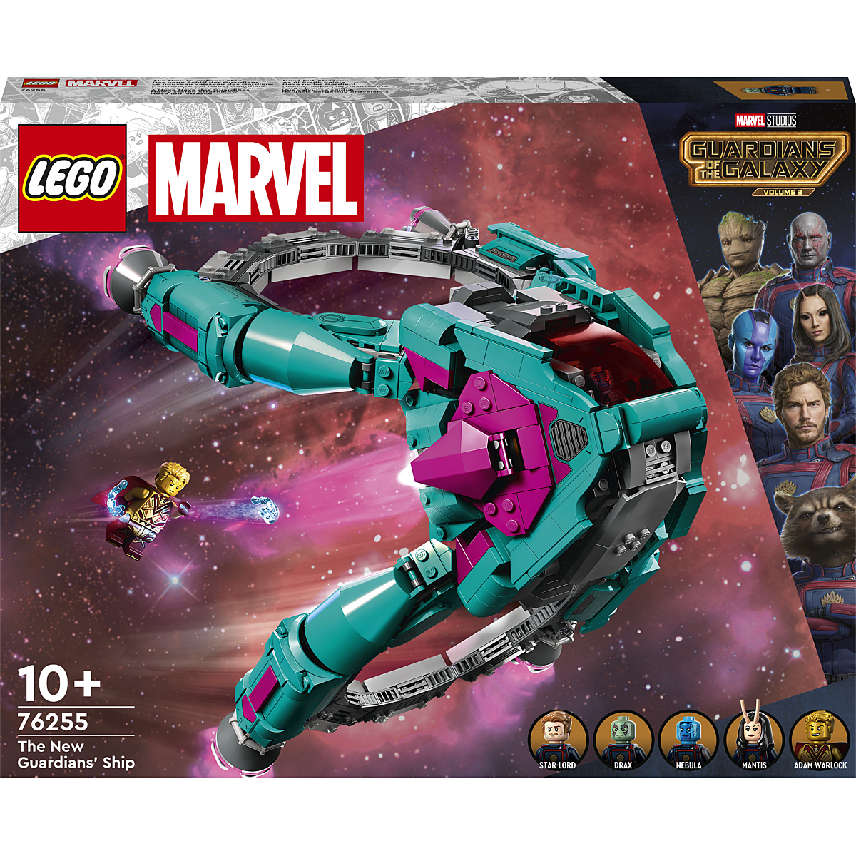 Offrez aux fans, amateurs de super-héros, le jouet Le Nouveau Vaisseau des Gardiens LEGO Marvel (76255) et mettez entre leurs mains les stars du voyage spatial des Gardiens de la Galaxie Volume 3 de Marvel Studios. Un jouet Marvel pour les garçons et les filles de 10 ans et plus, parfait pour stimuler l'imagination des petits aventuriers de l'espace.